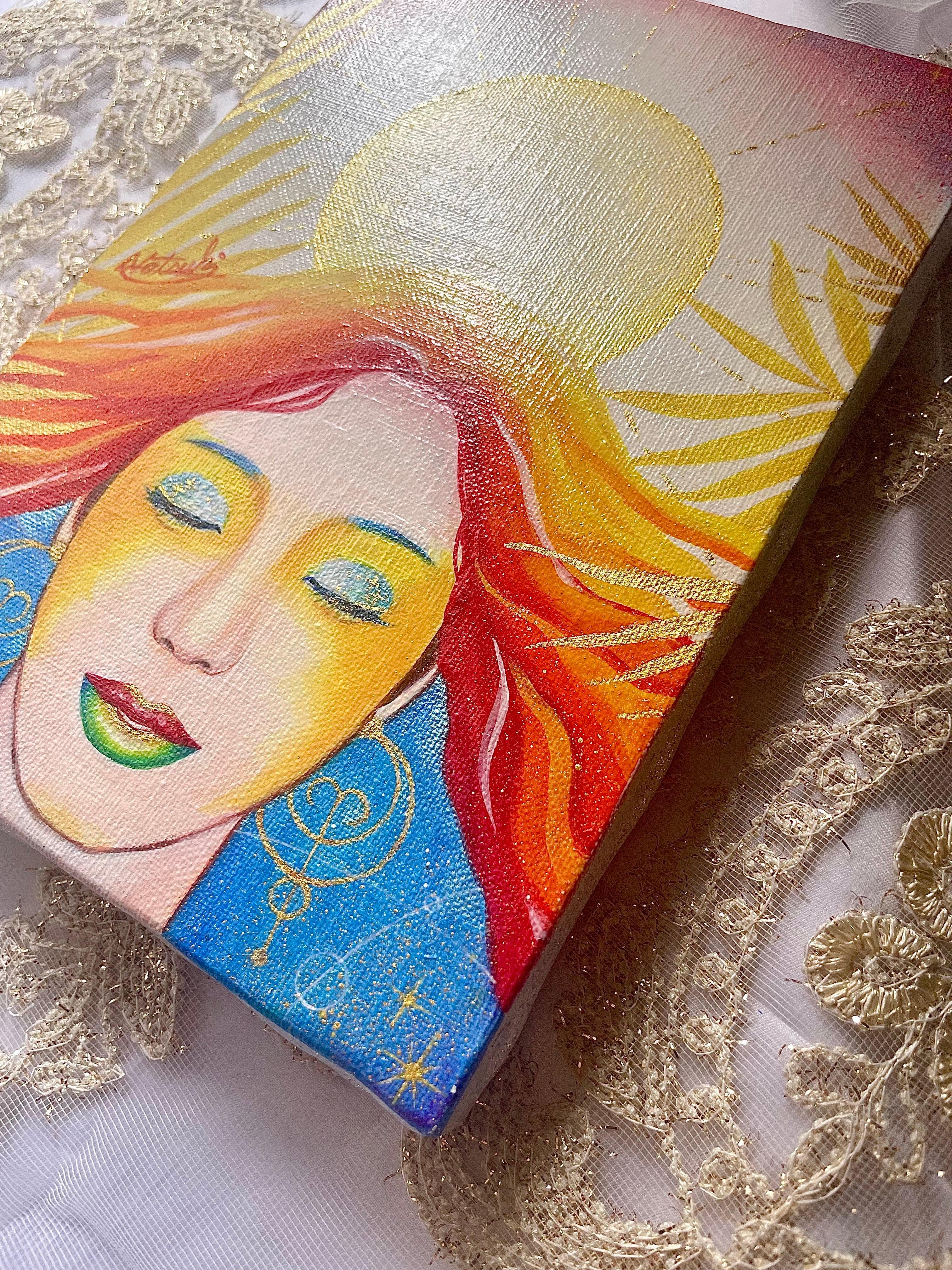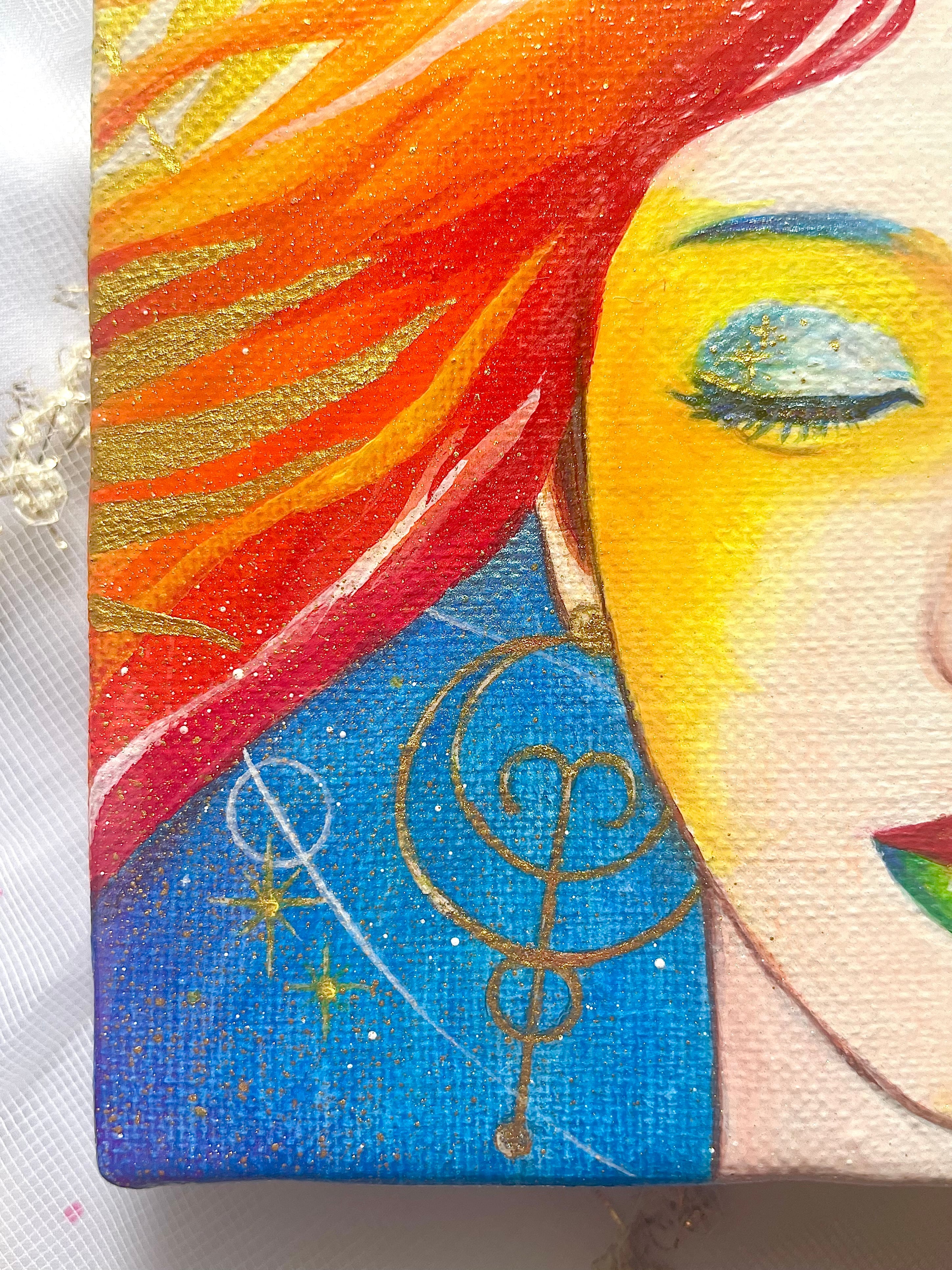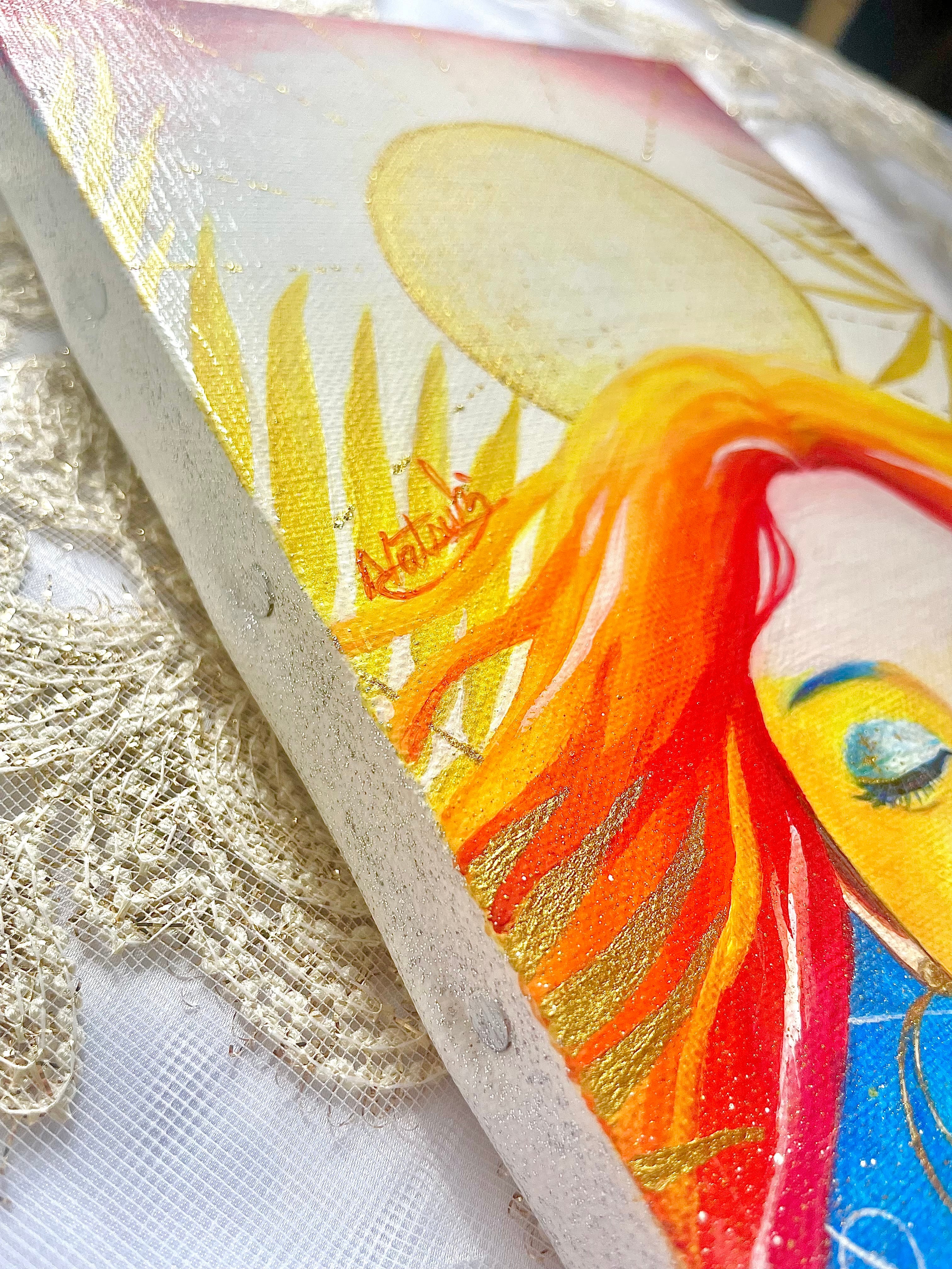 キャンバス側面はラメシルバーの絵具が塗ってあります。