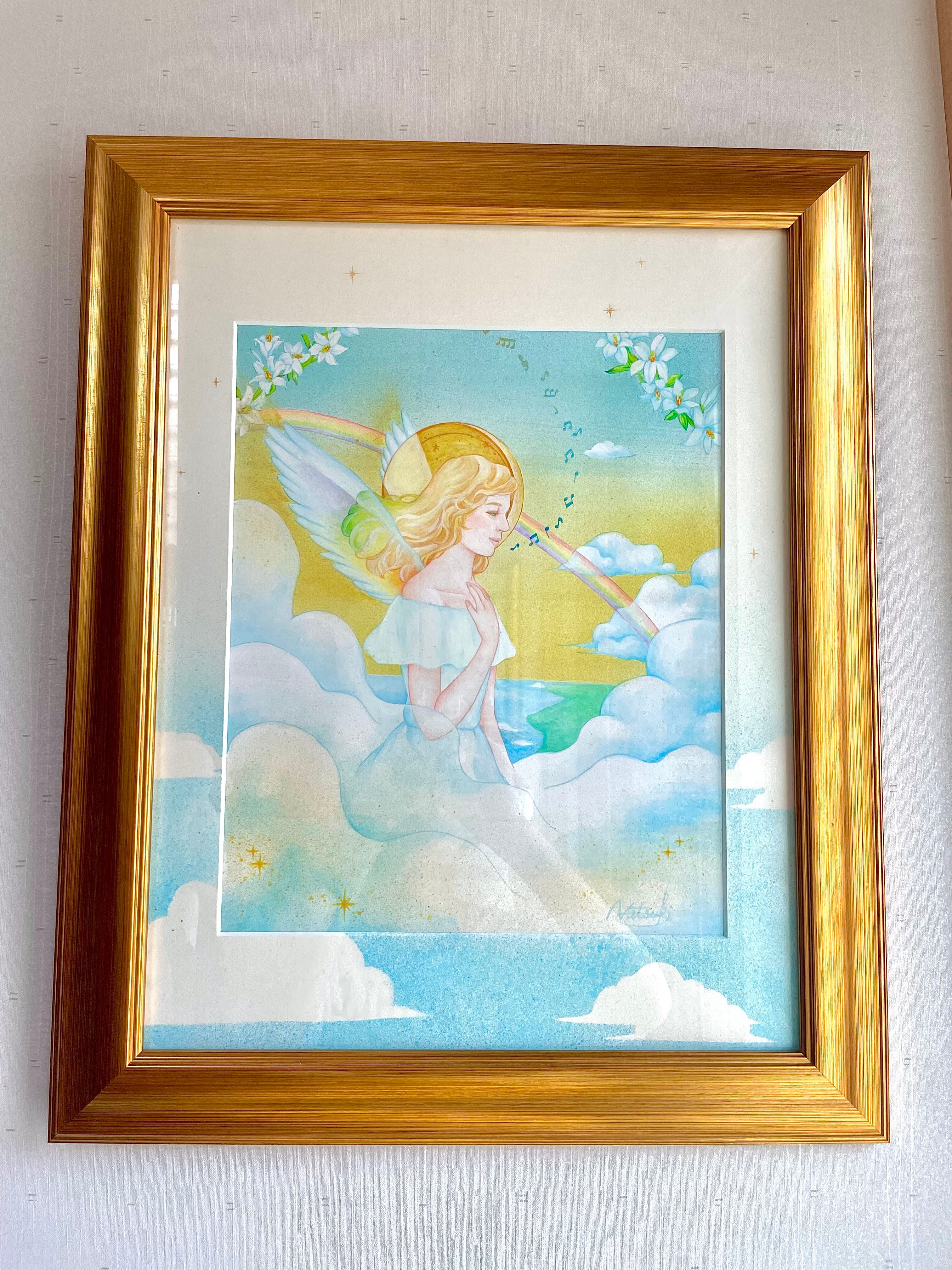 最後の写真は、額装時にイメージが分かりやすいよう額に入れた状態の写真も載せていますが、