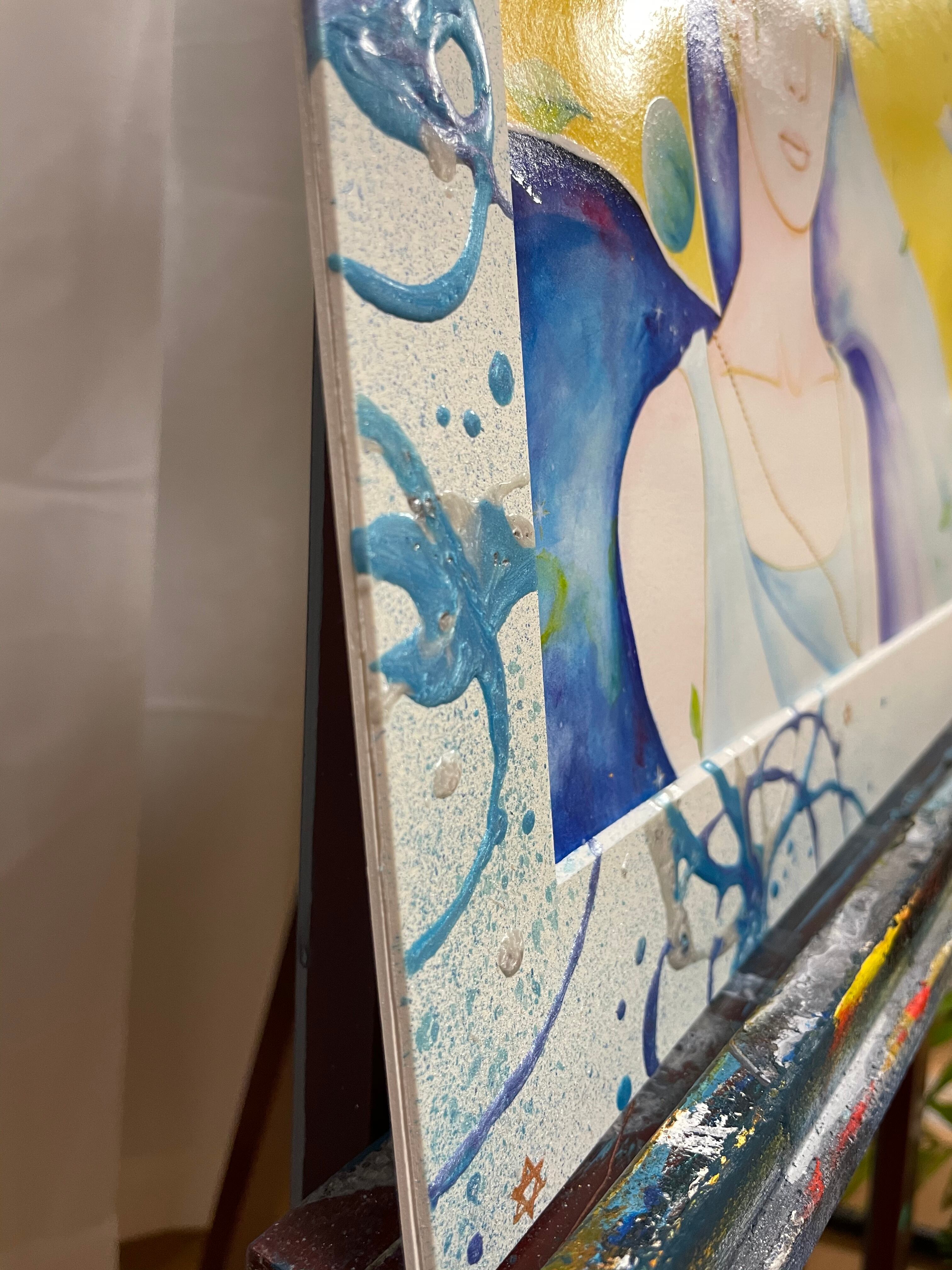 マット部分にはポーリングメディウムという、垂らし用メディウムを使用しました。