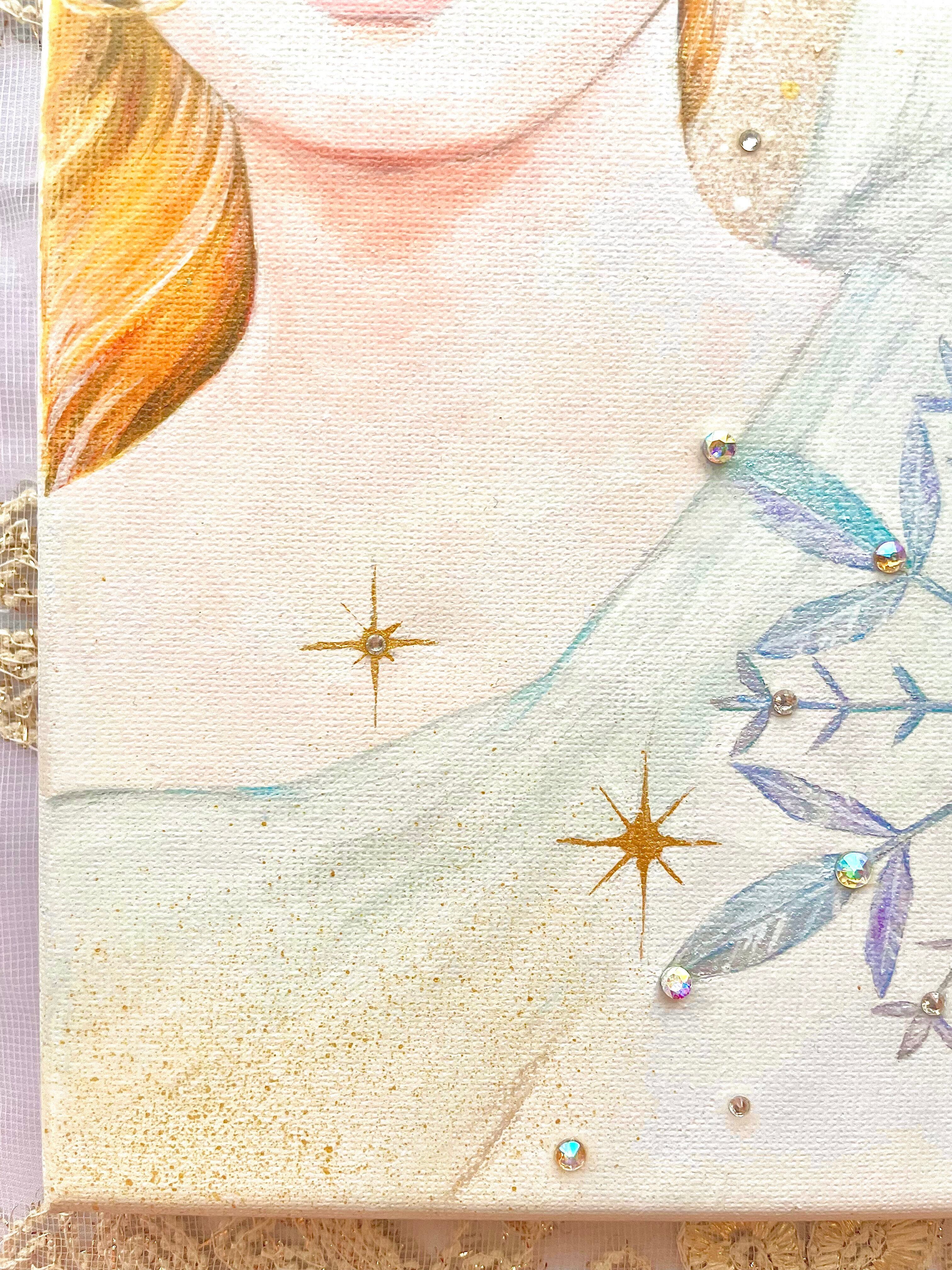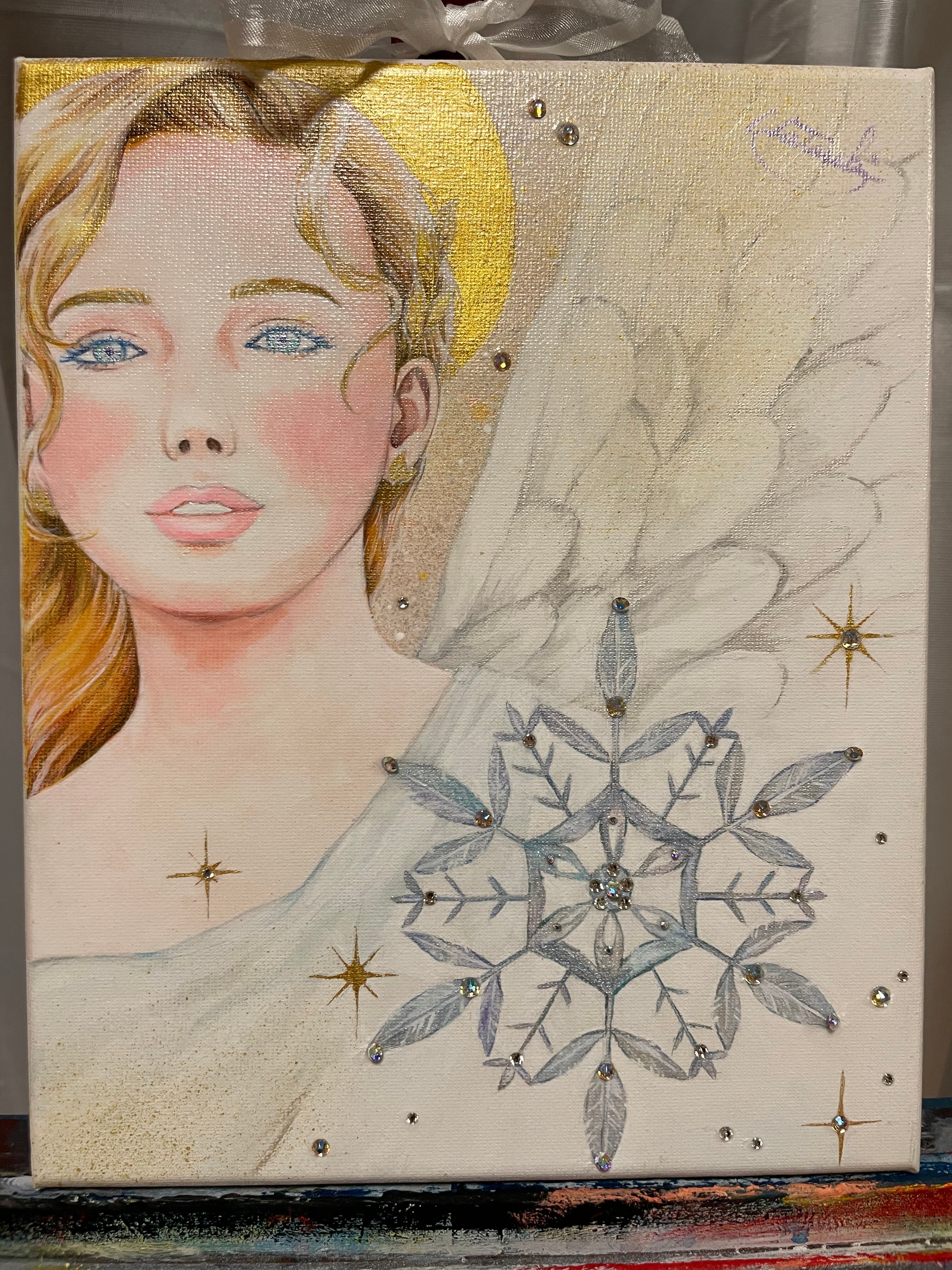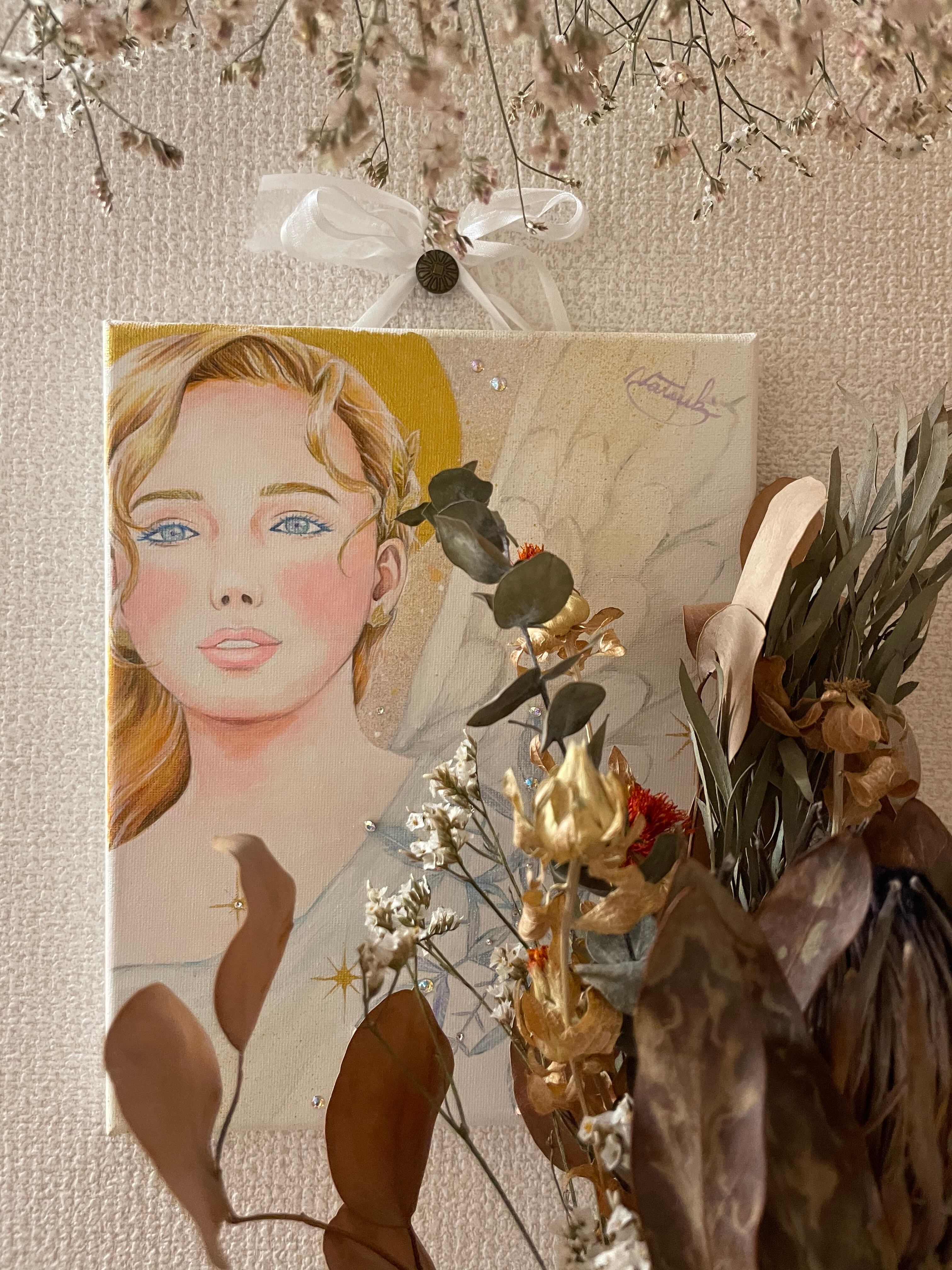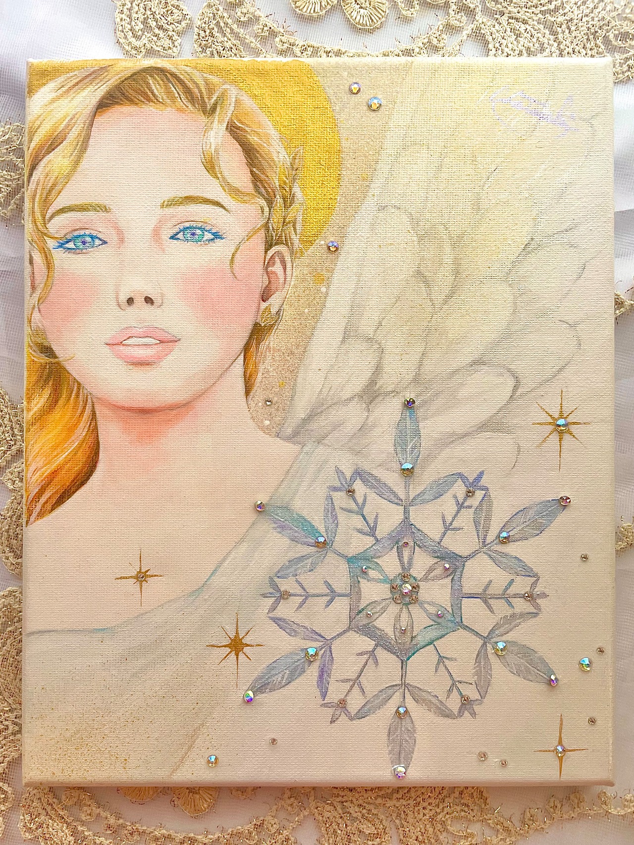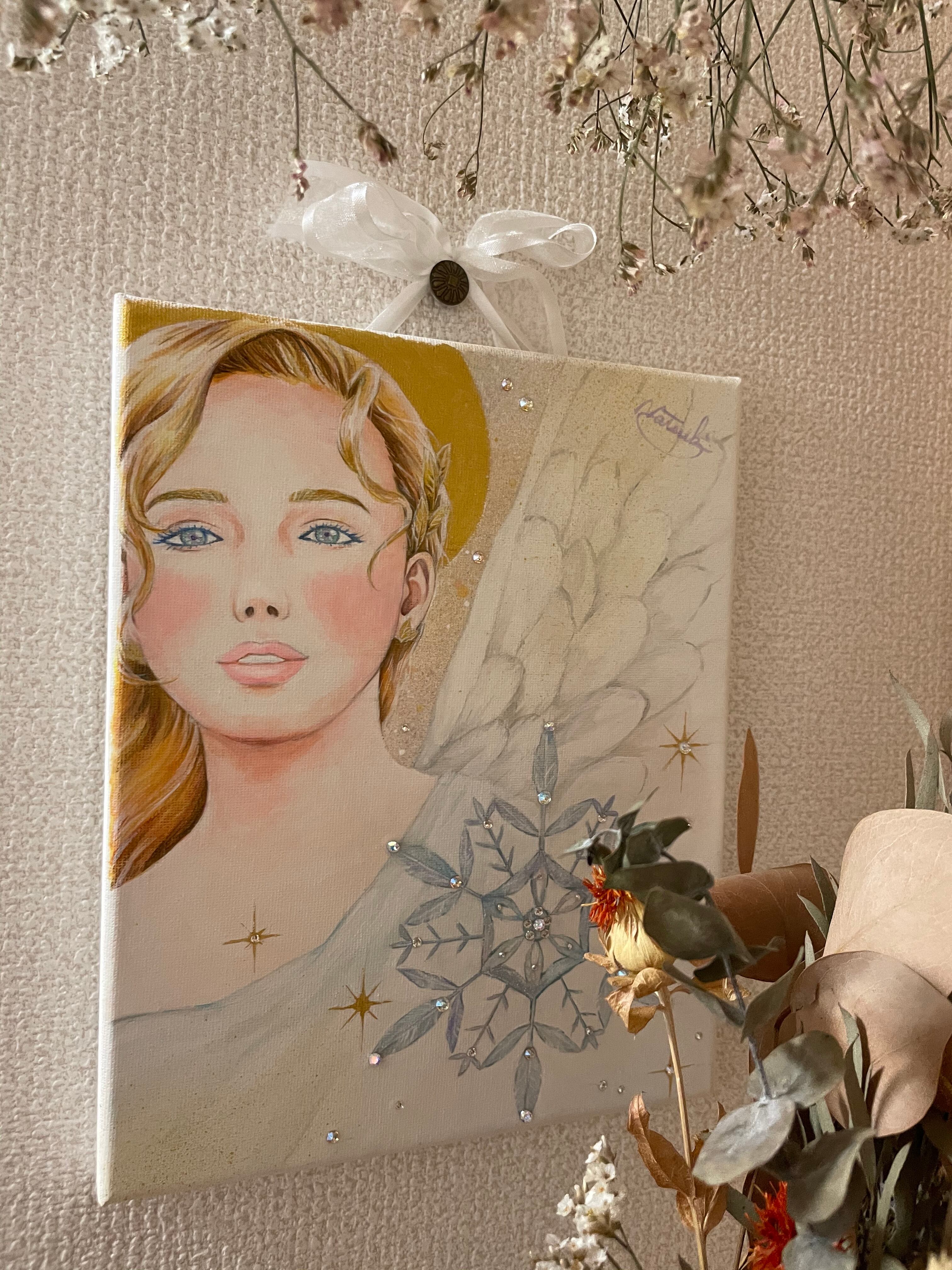 ☆キャンバスにアクリル絵の具、スワロフスキーで制作