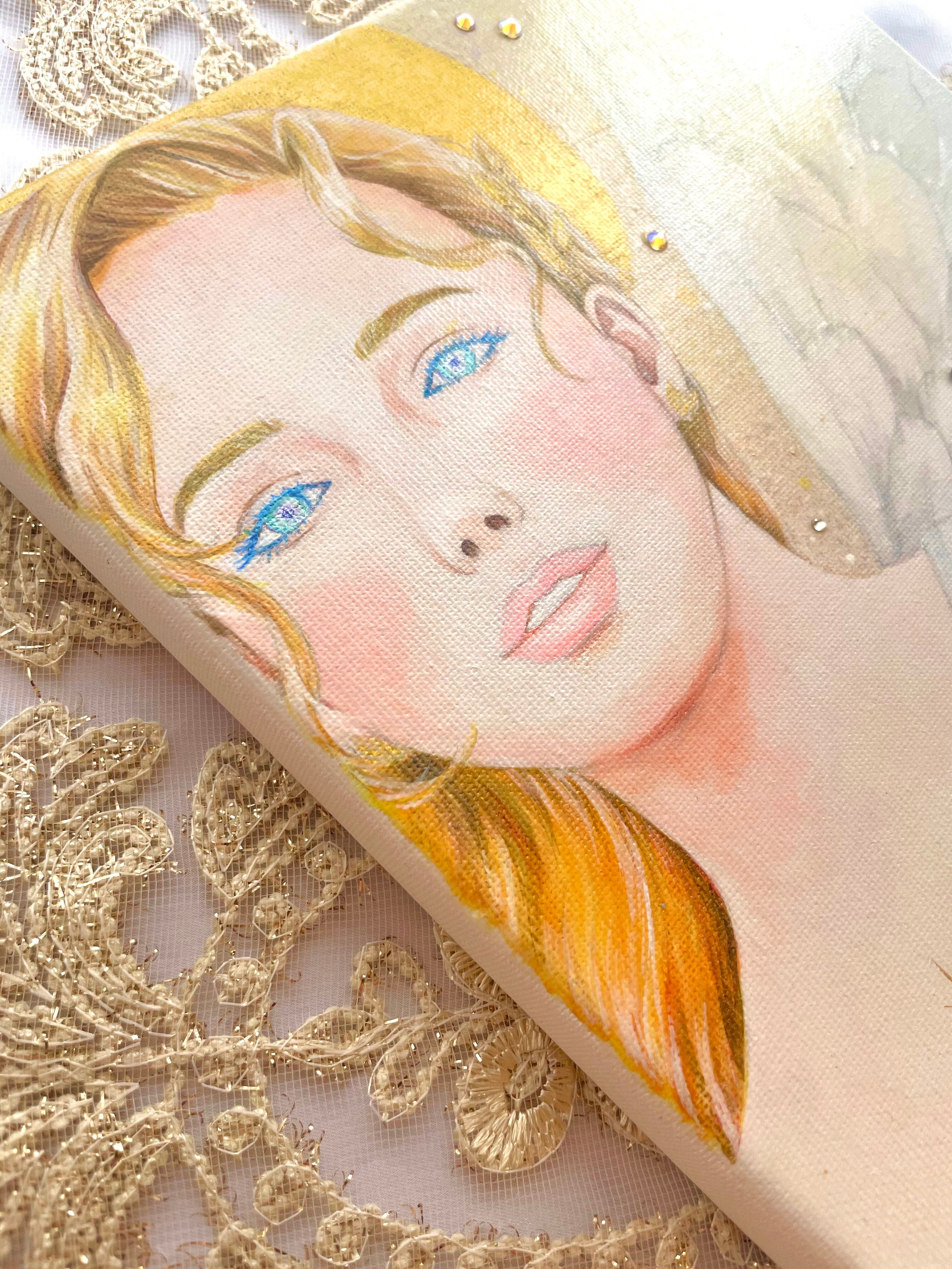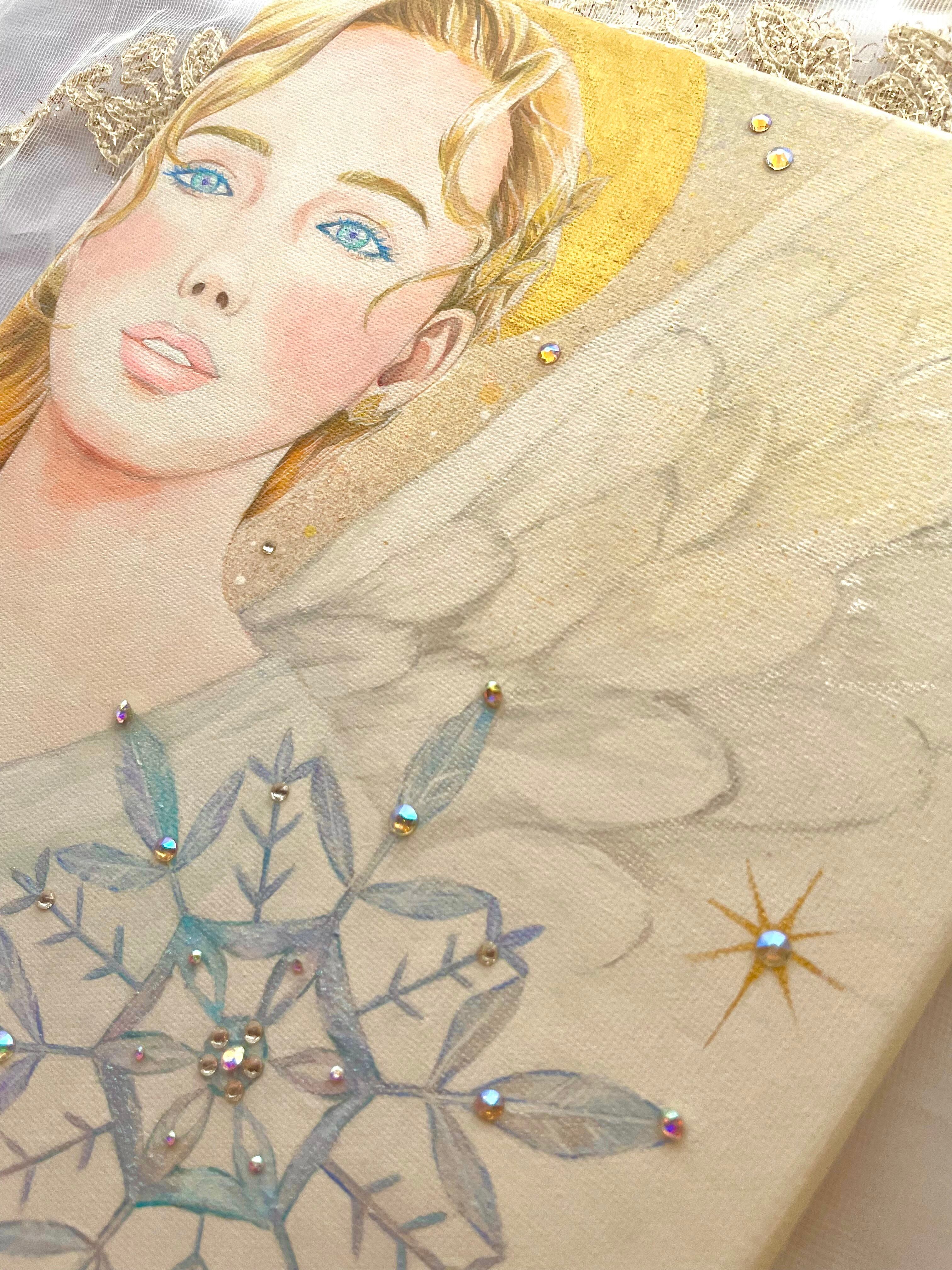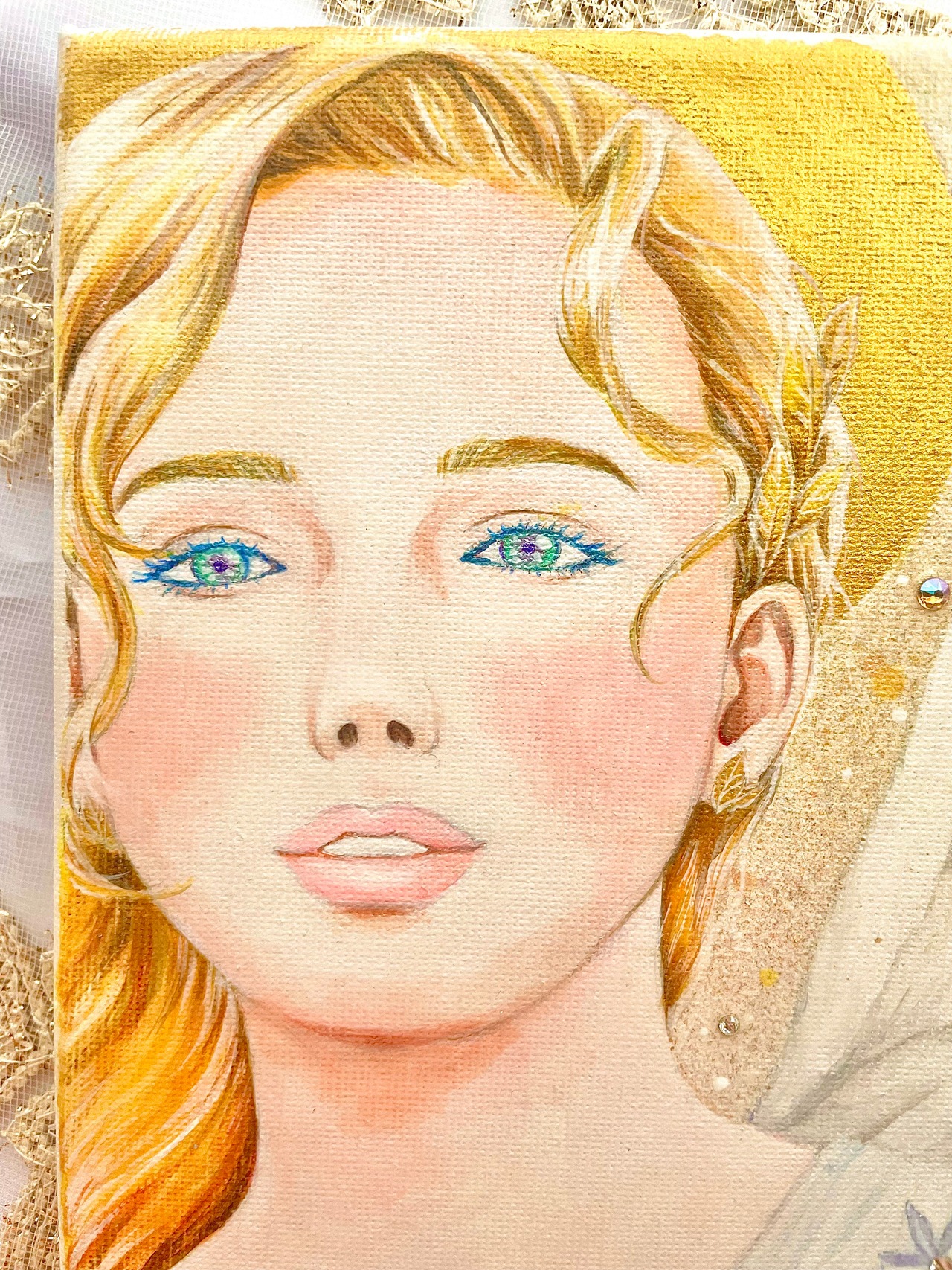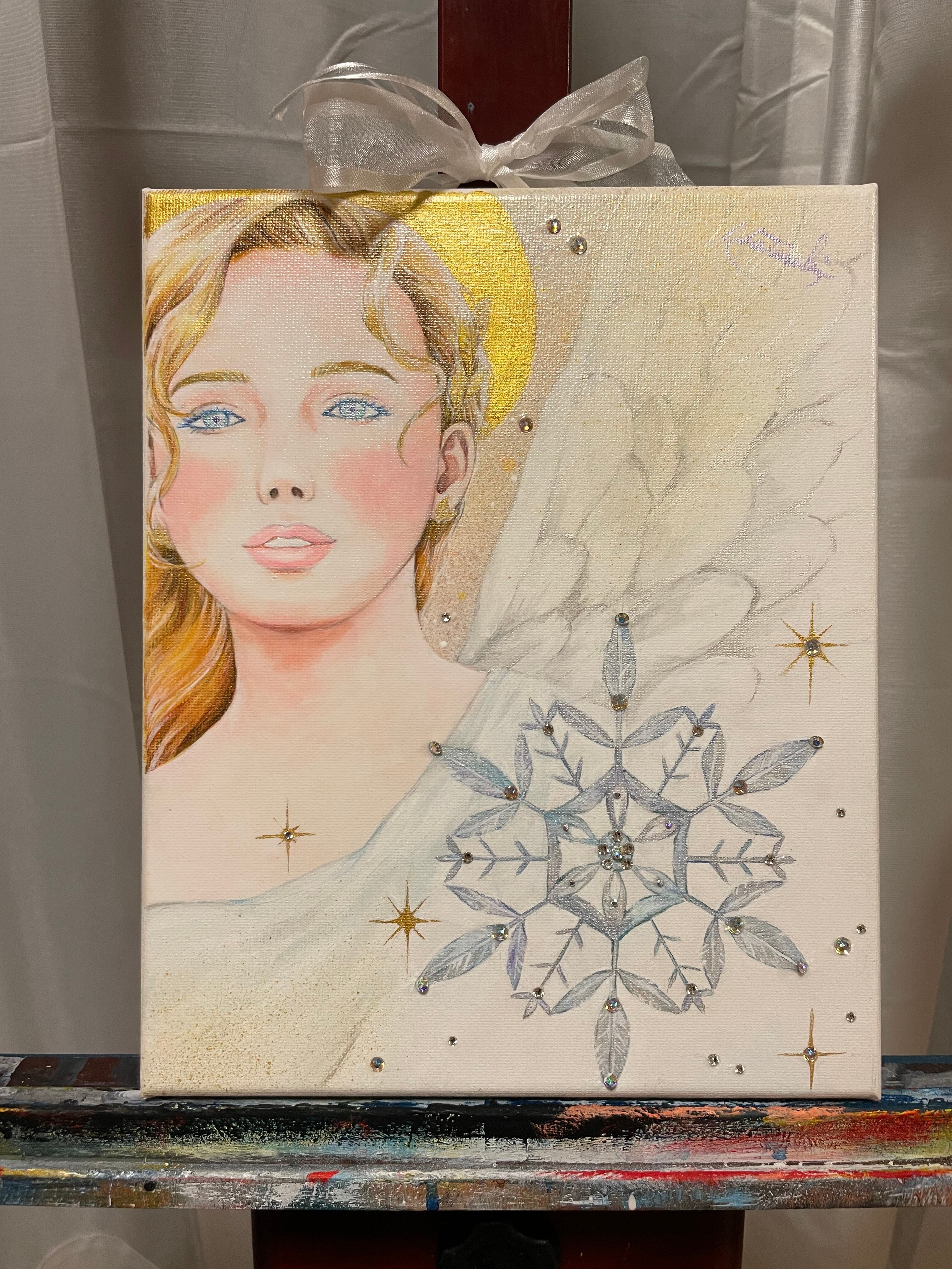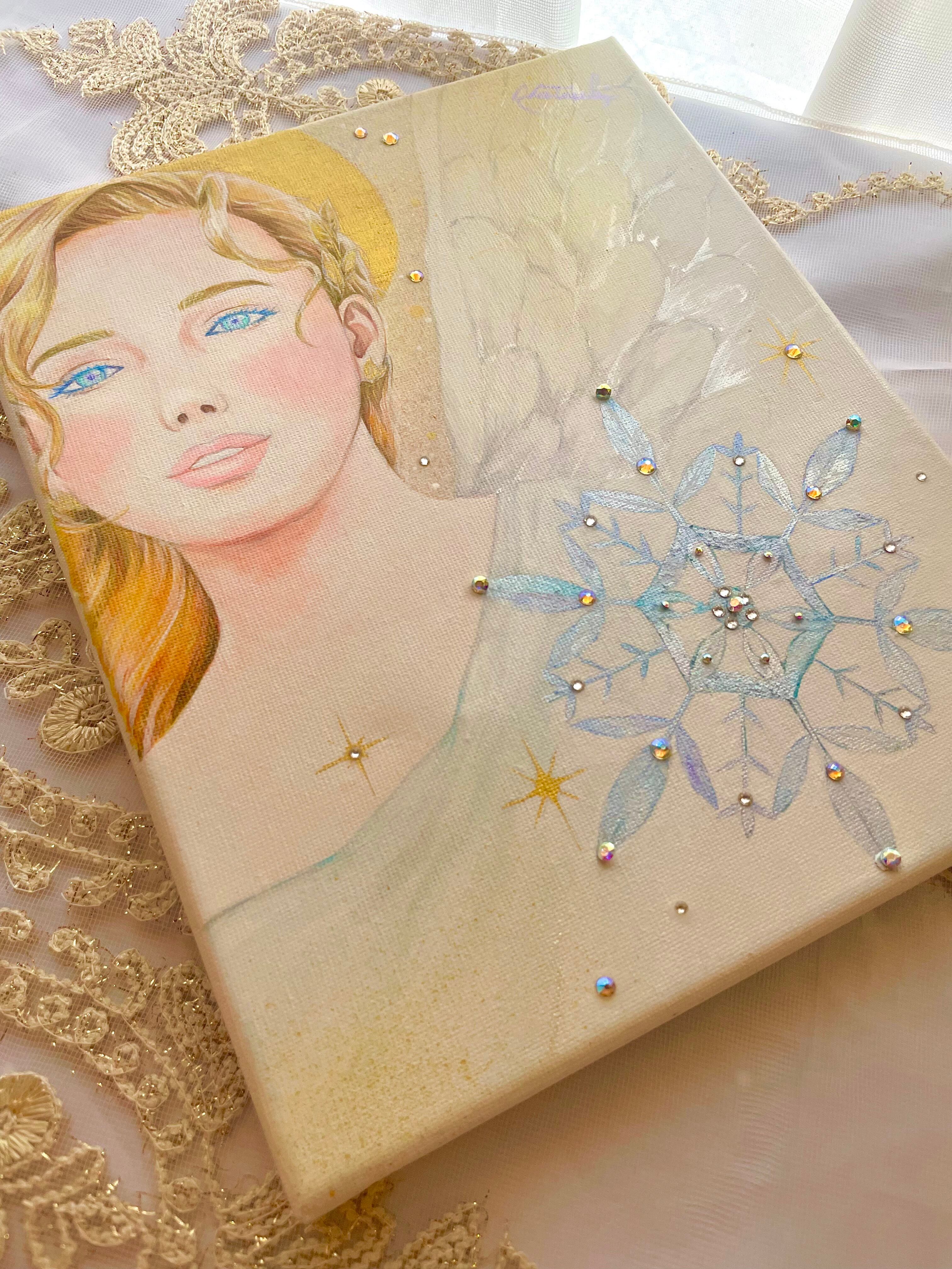 ☆キャンバスにアクリル絵の具、スワロフスキーで制作