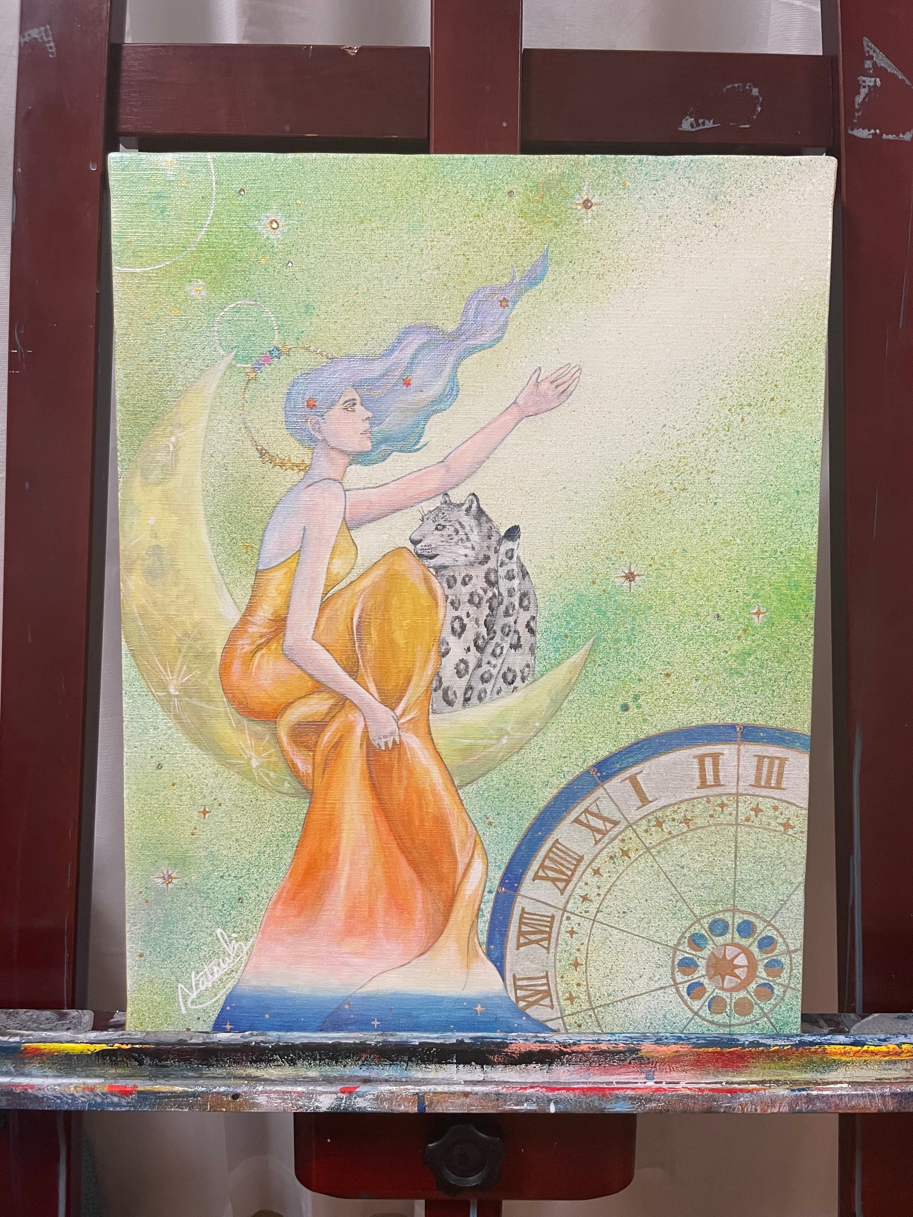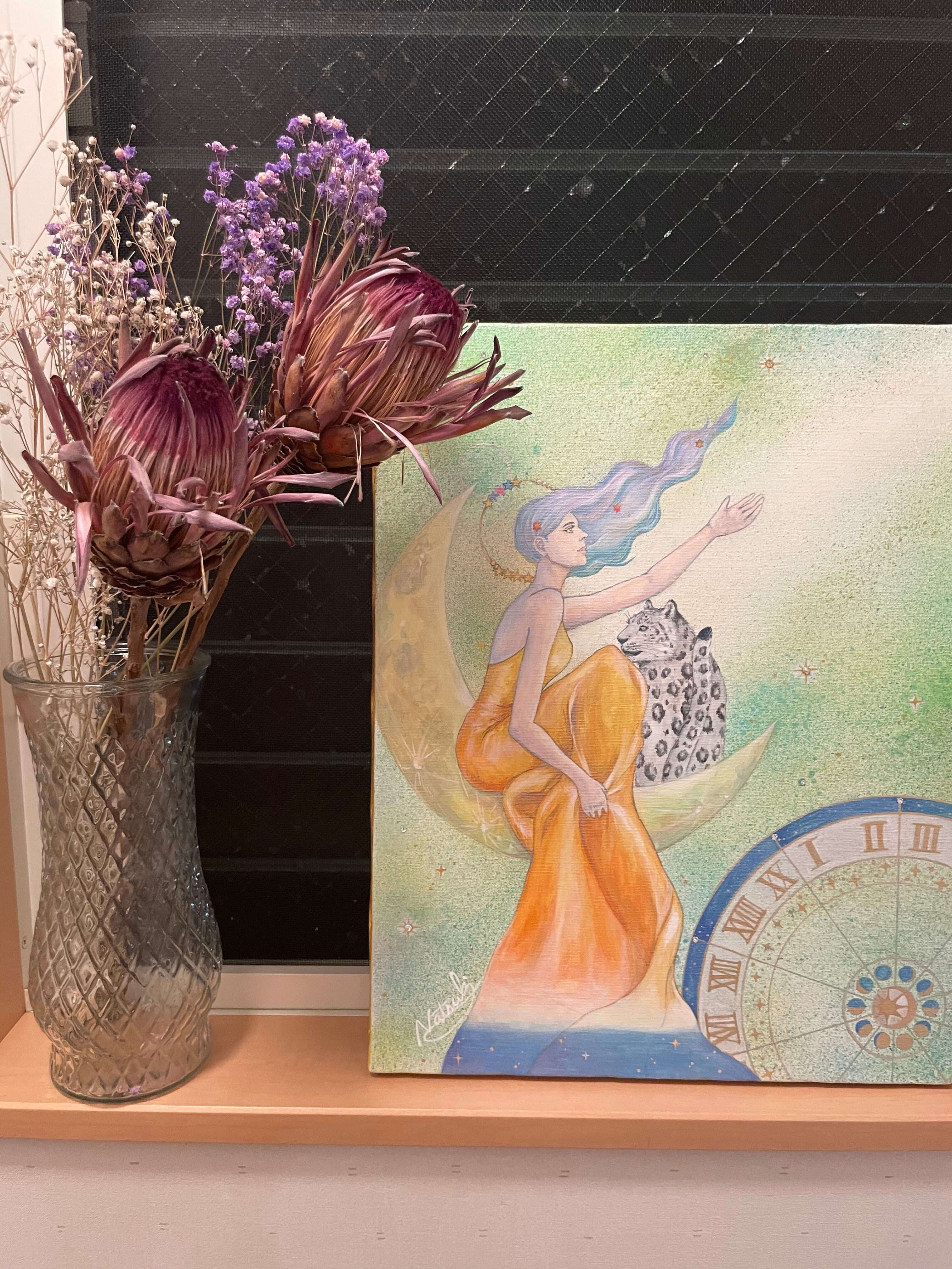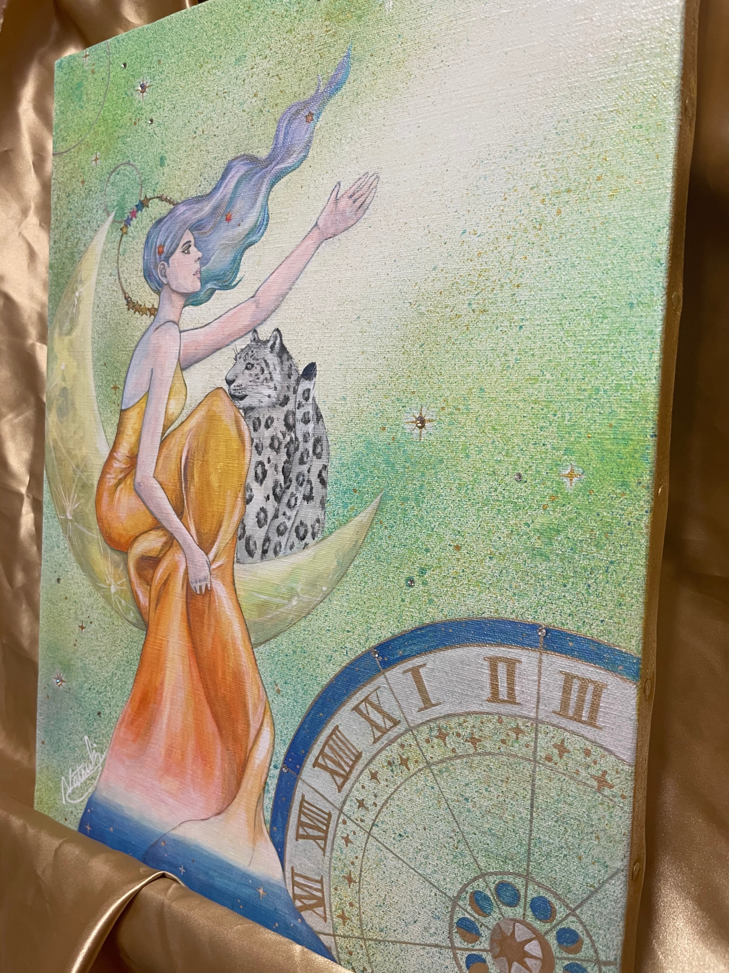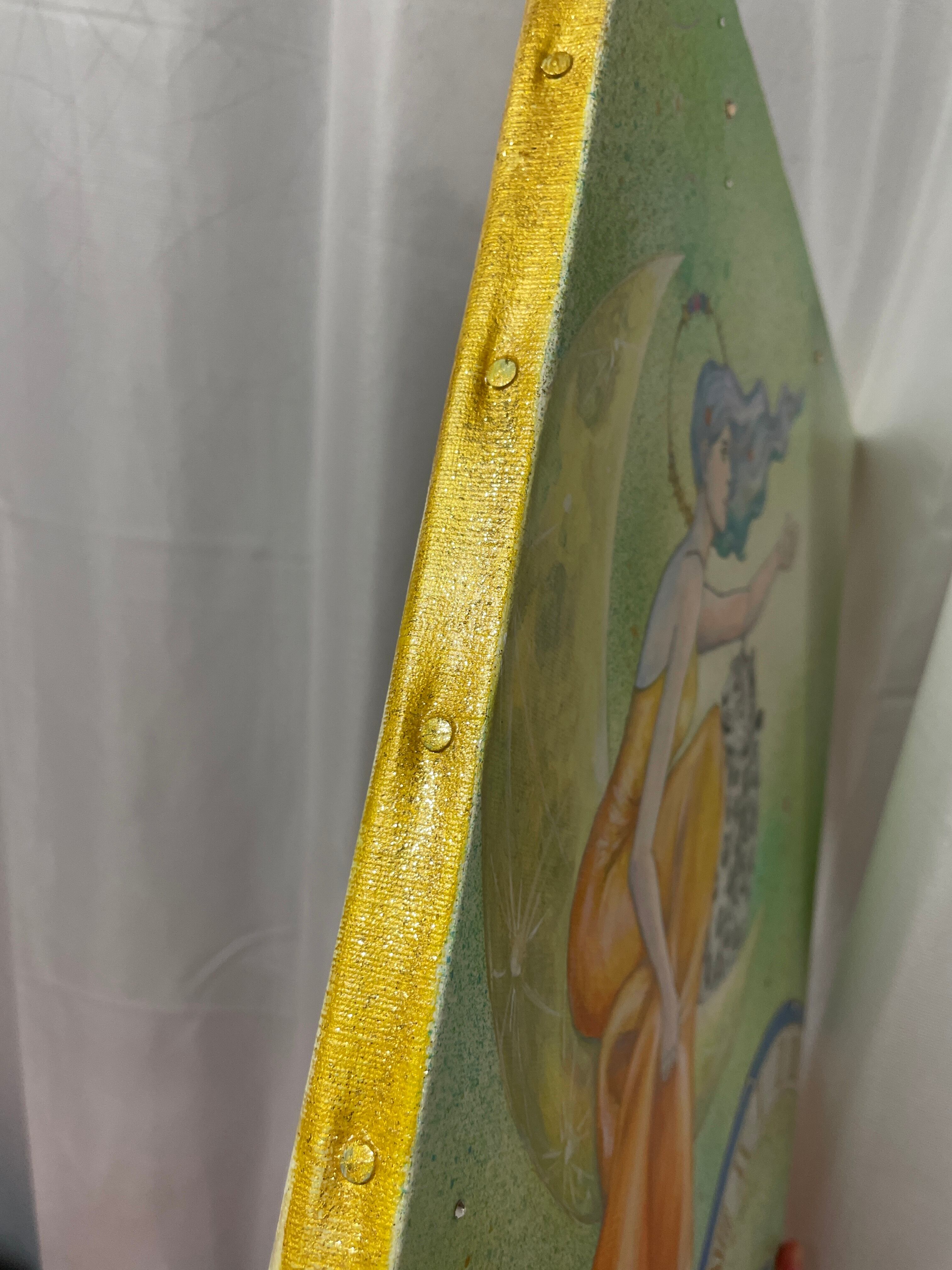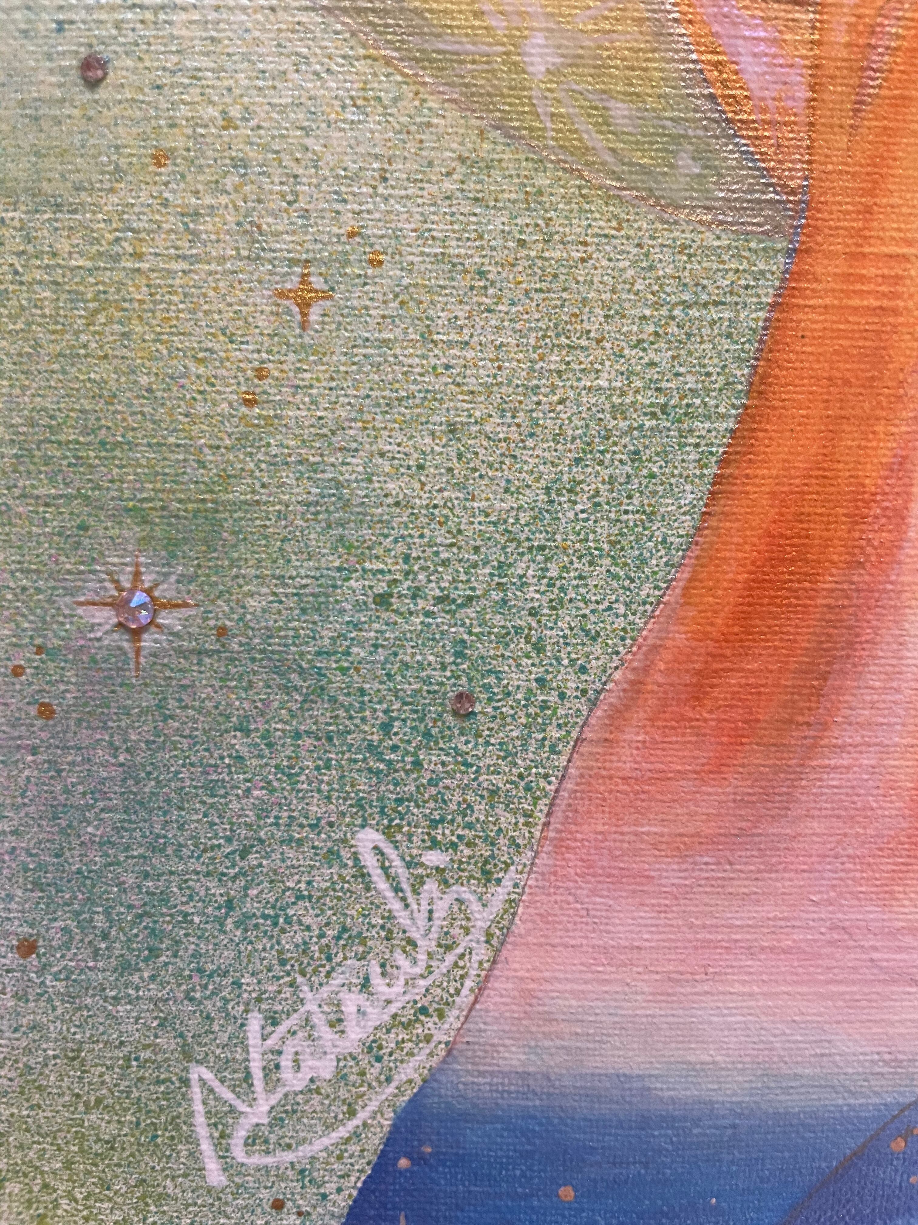 キャンバス側面にもこだわっていて、ゴールドで塗ったあとグリッターも塗ってあるので、こちらもキラキラして見えます。