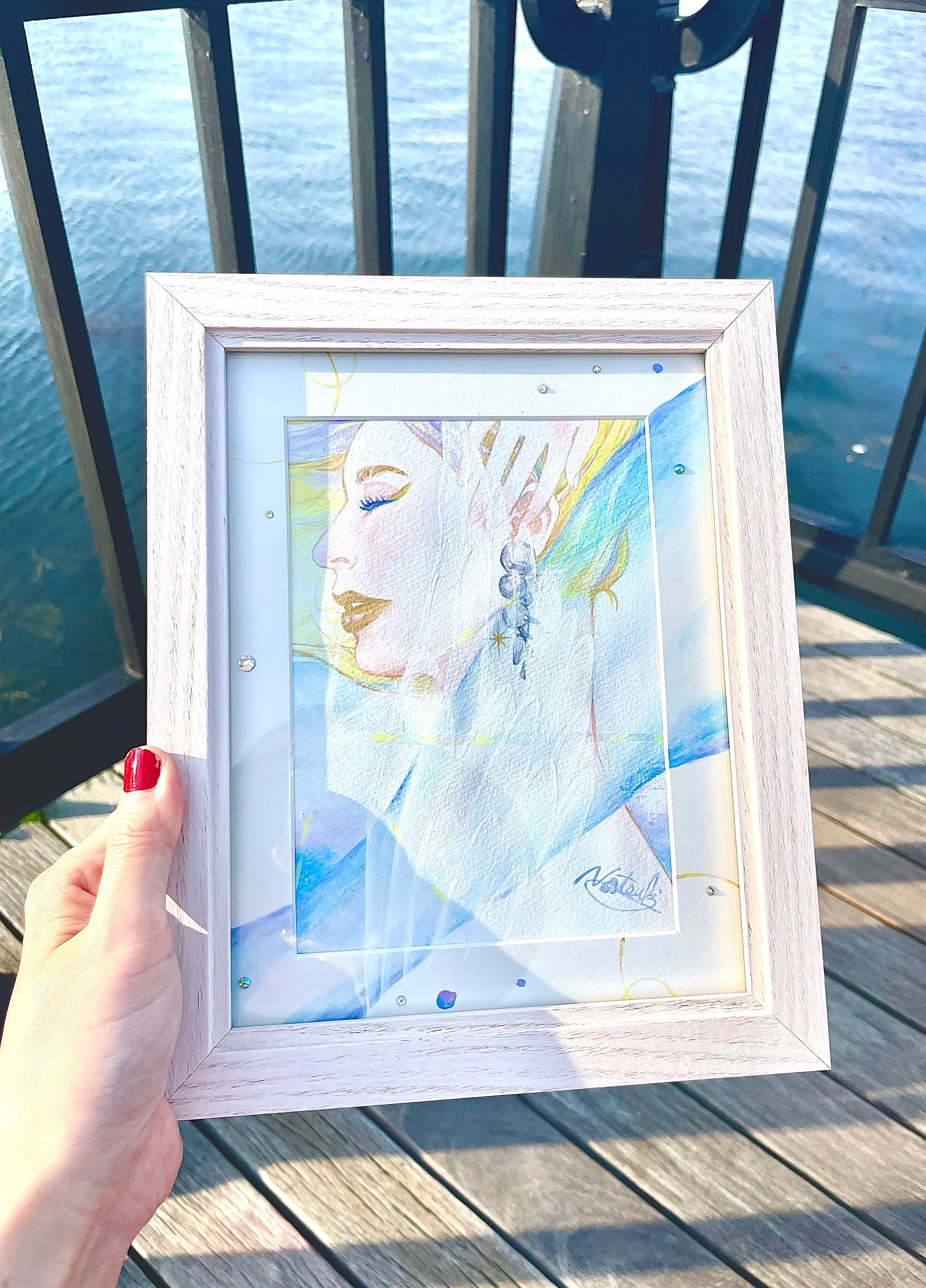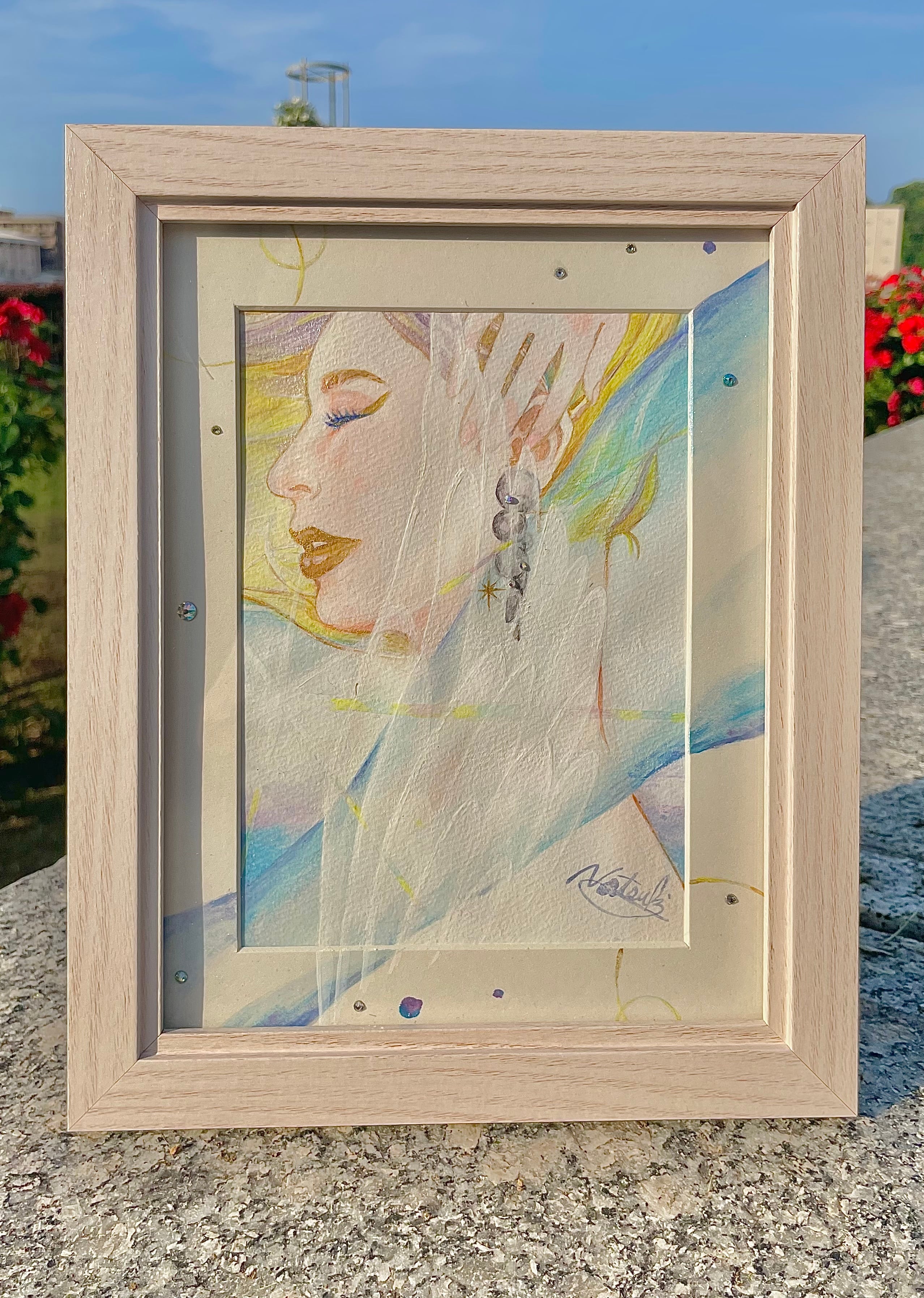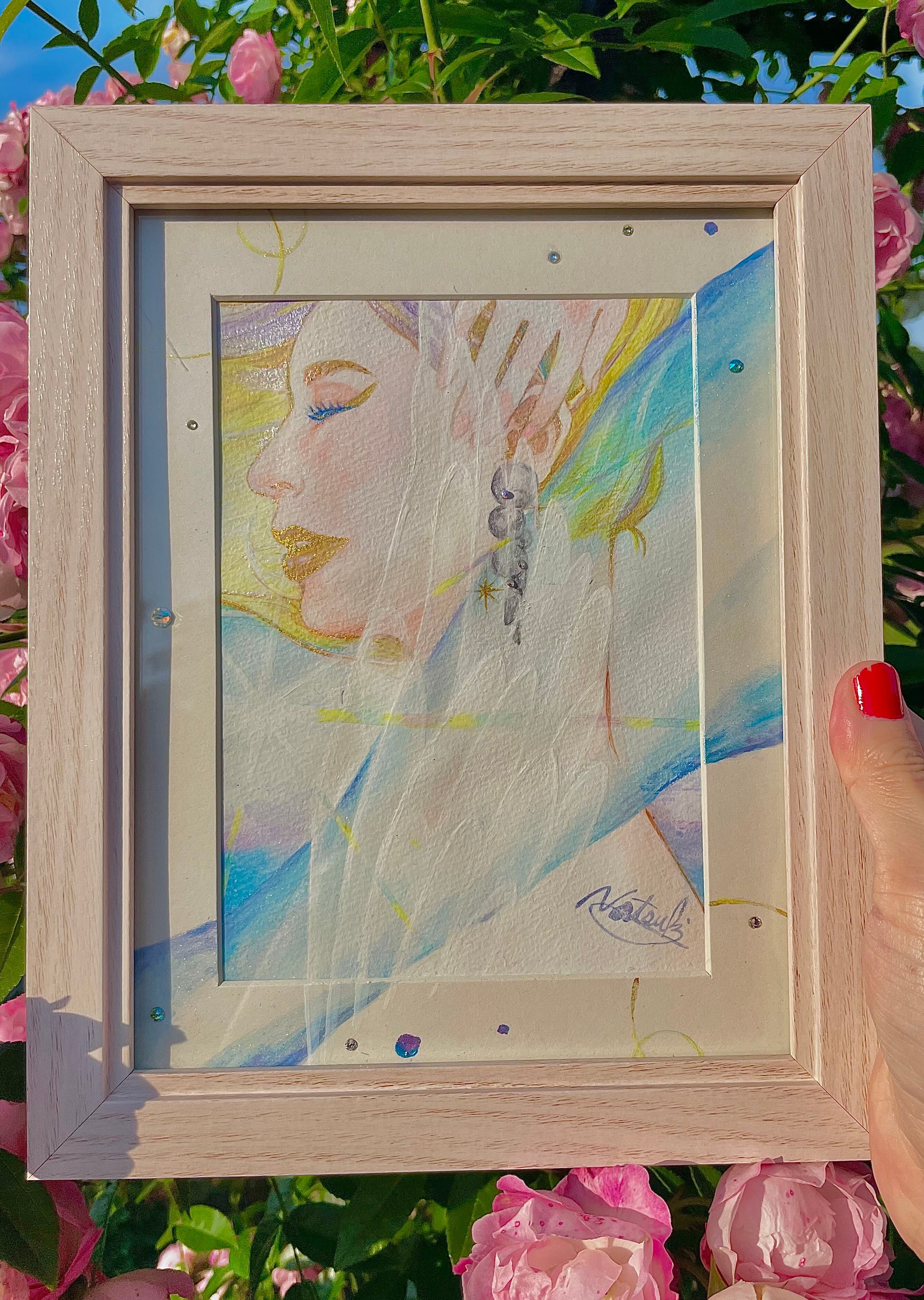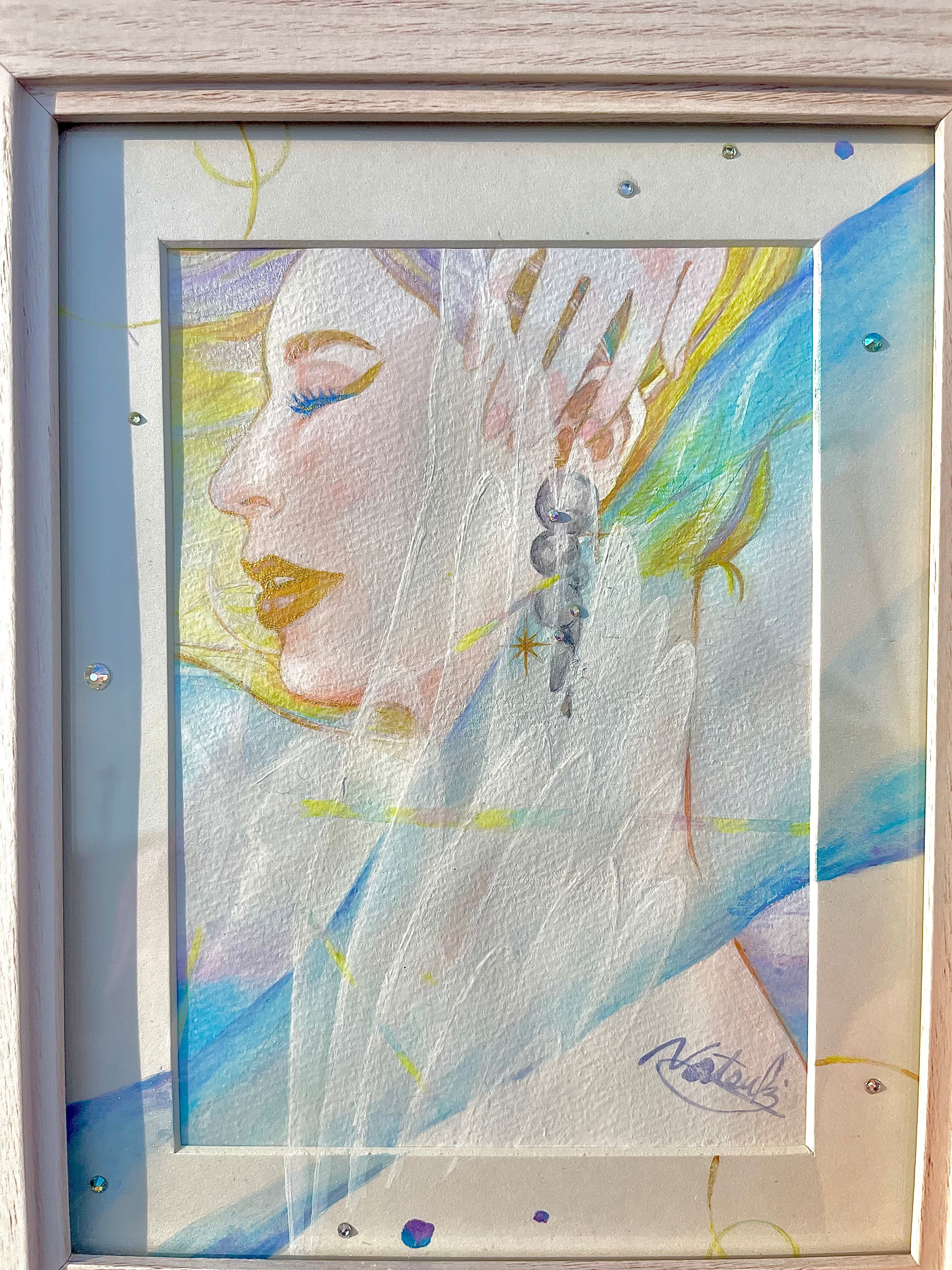 ✴︎画用紙にアクリル絵の具とスワロフスキーで制作