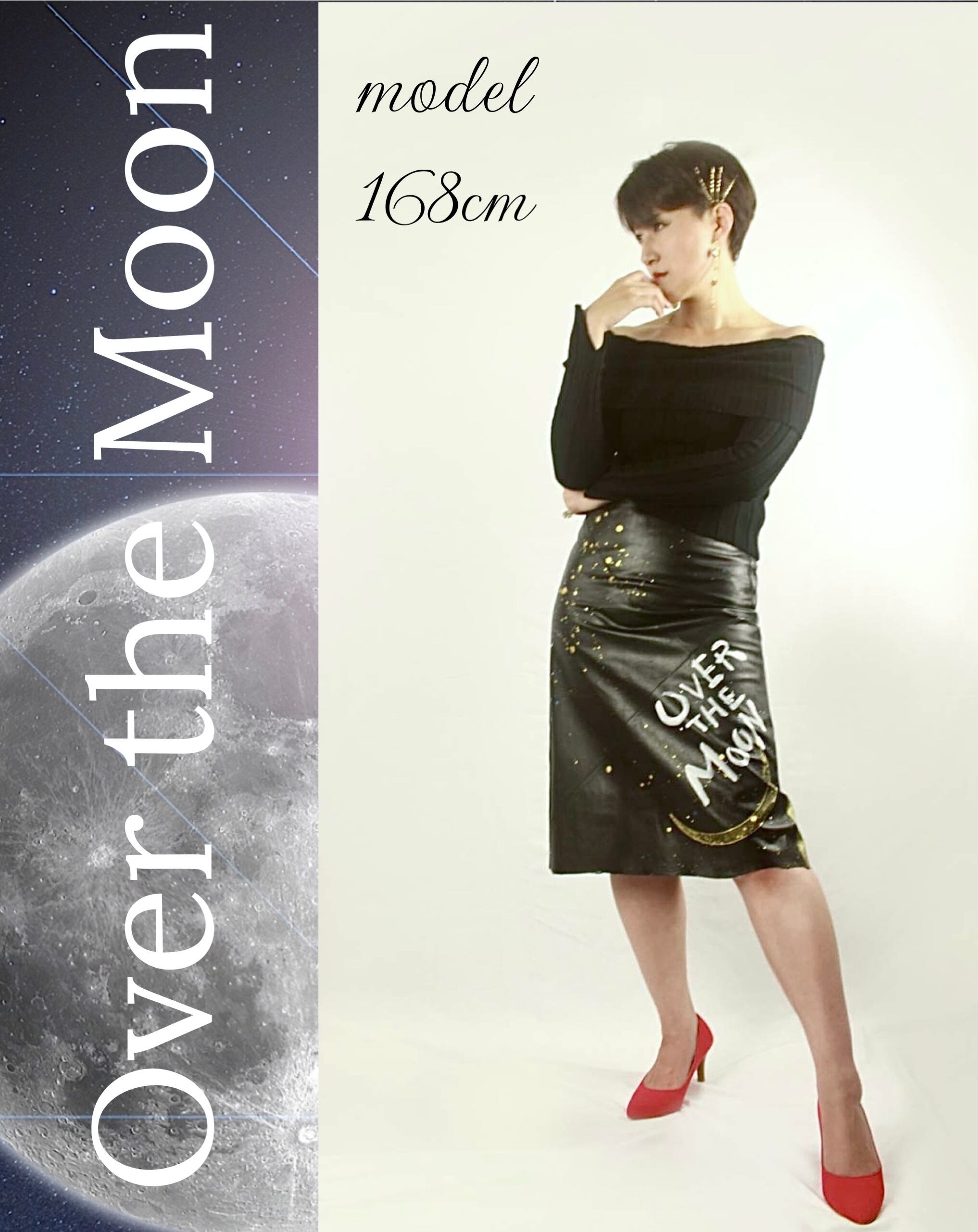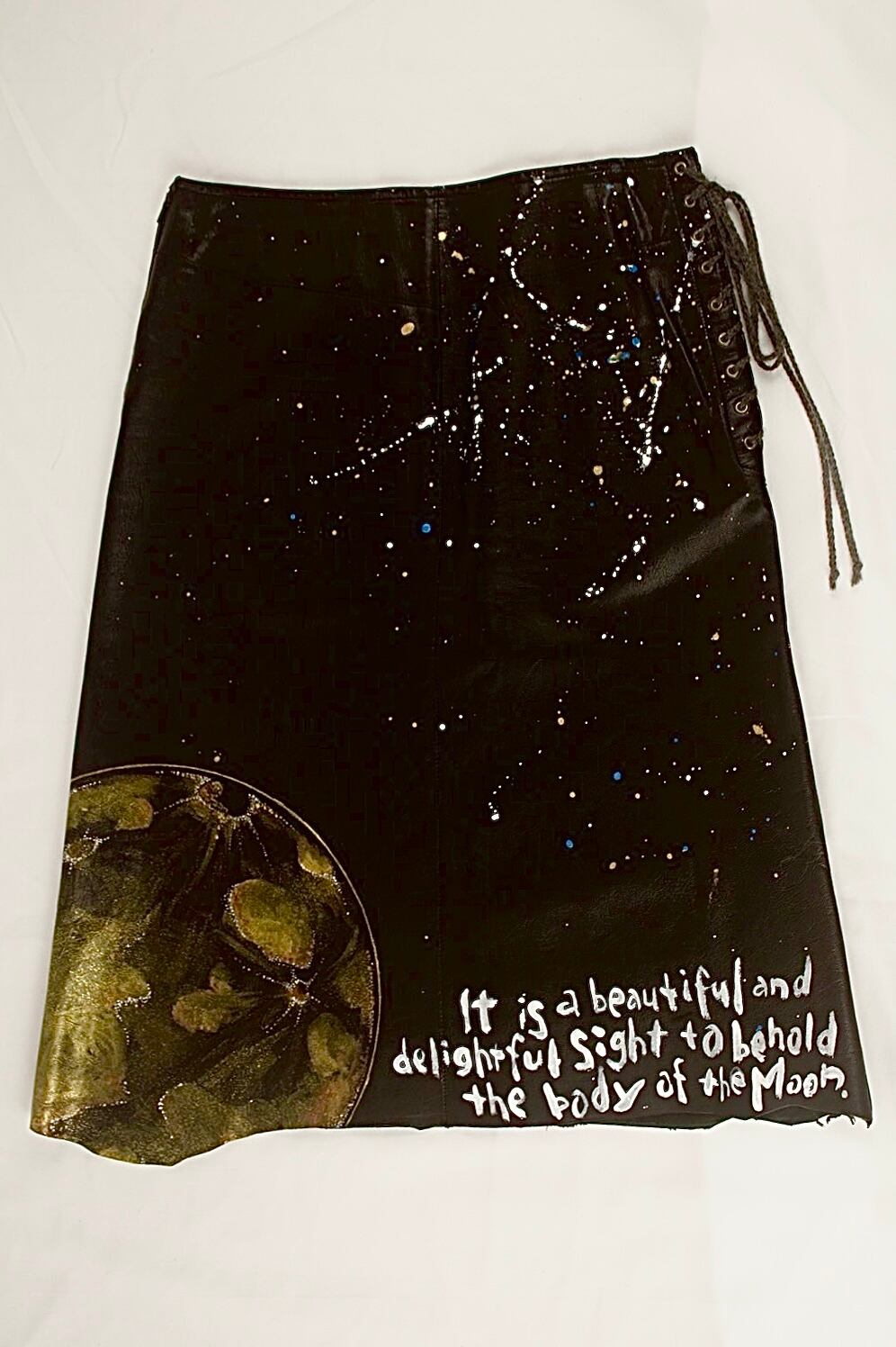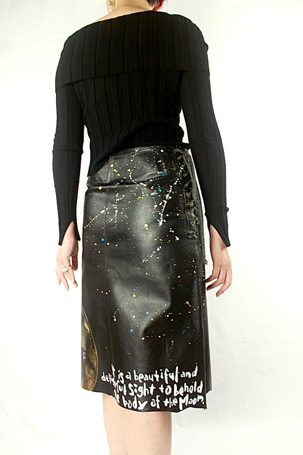 インパクトのある月のデザインをペイントした、オンリーワンのレザースカートです。