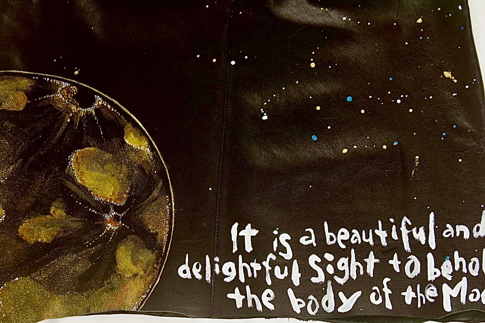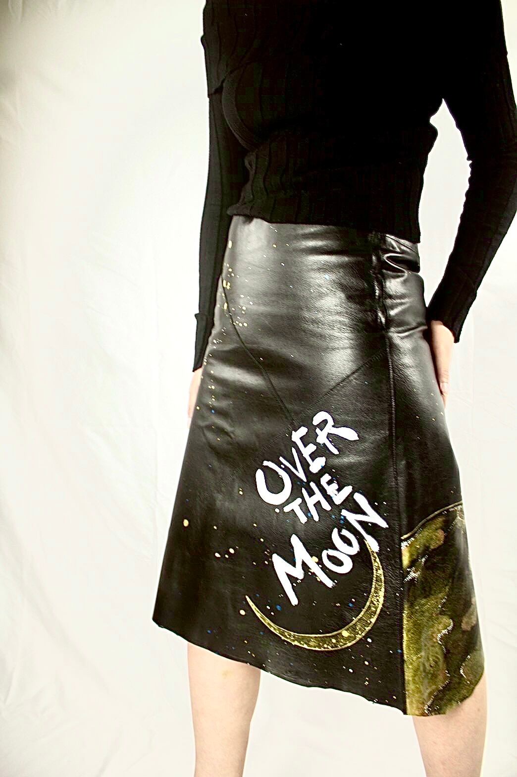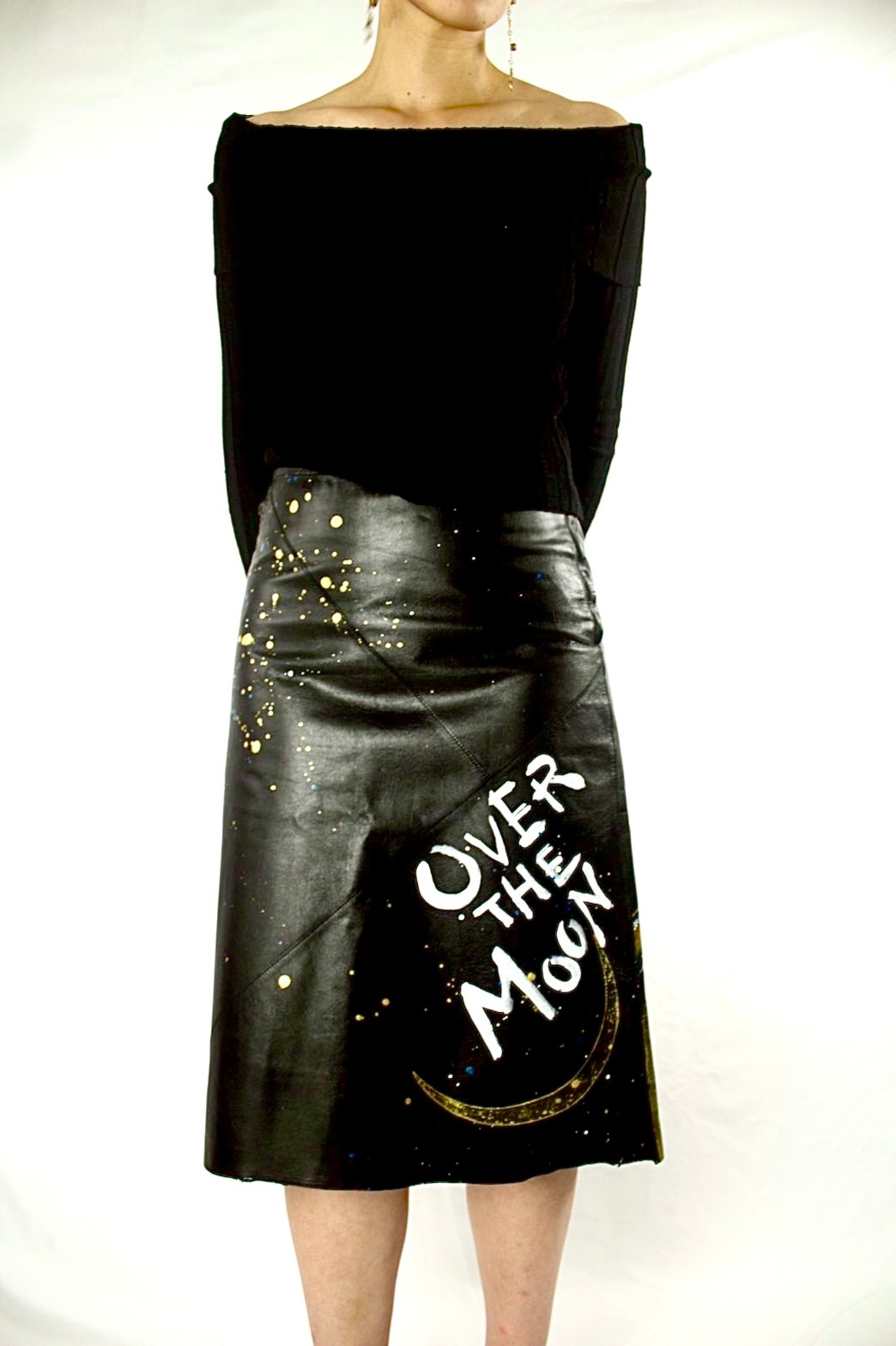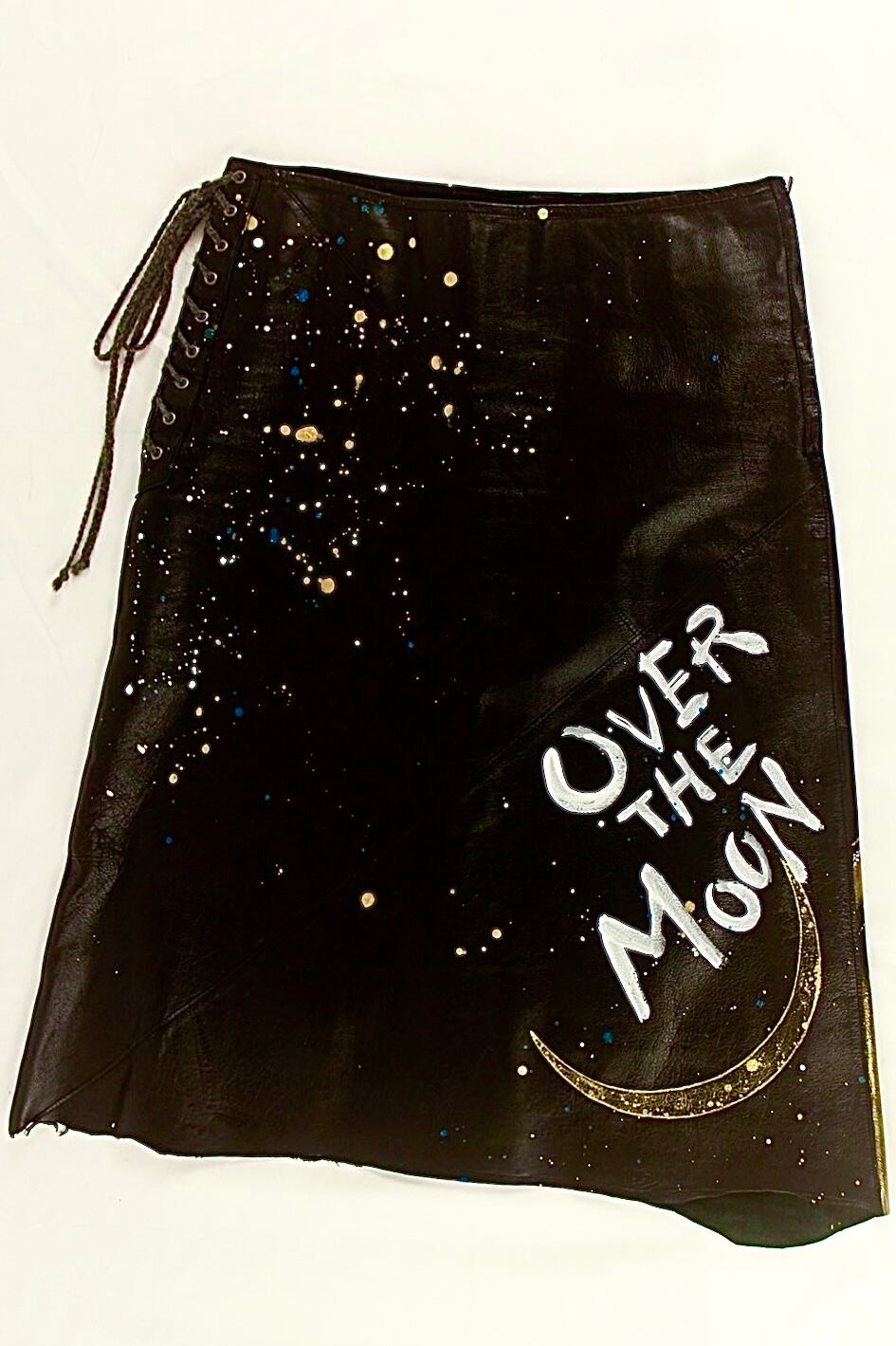 インパクトのある月のデザインをペイントした、オンリーワンのレザースカートです。