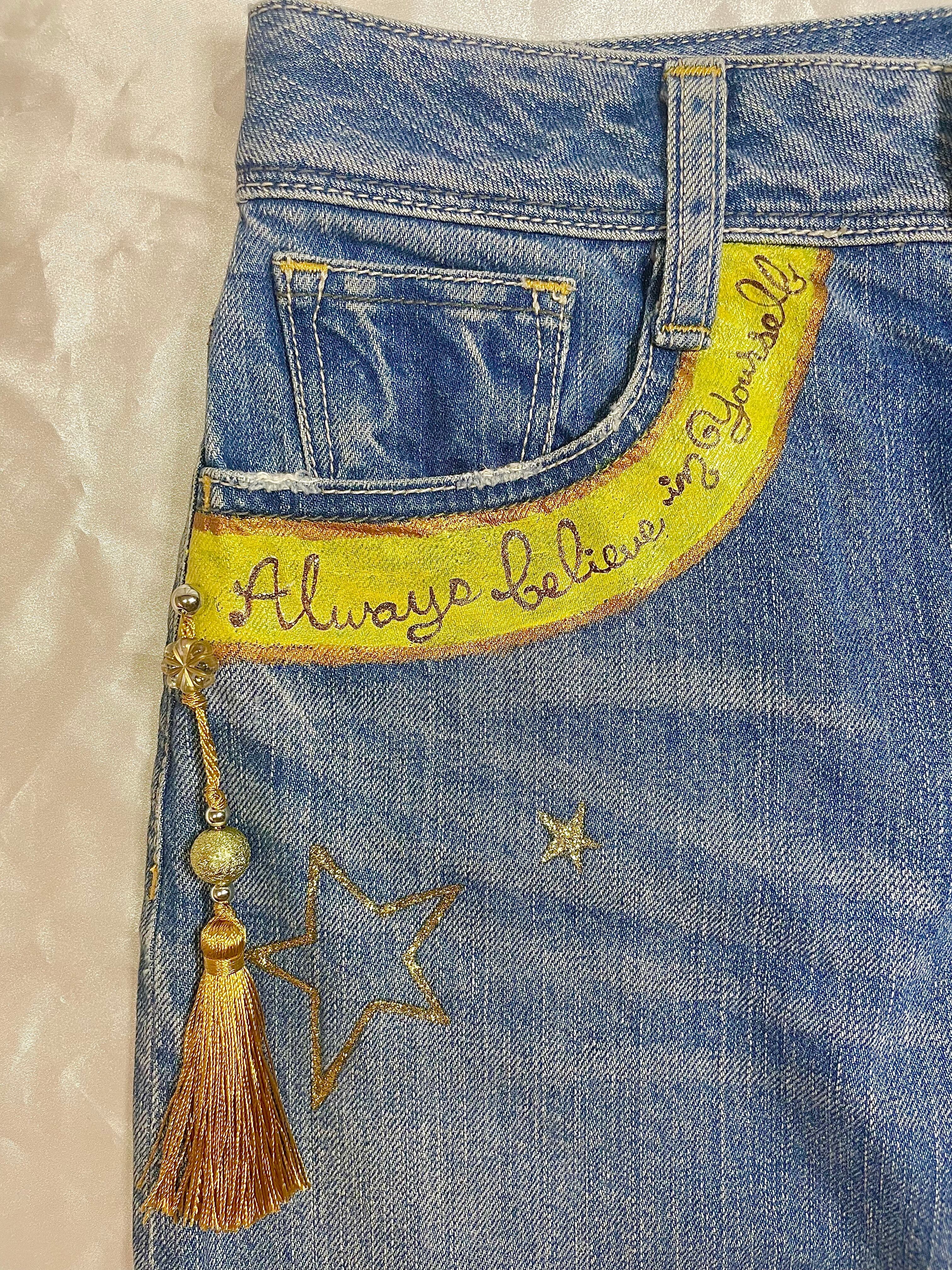 左上のポケット部分の下には『Always believe in yourself』のメッセージ入り✴︎
