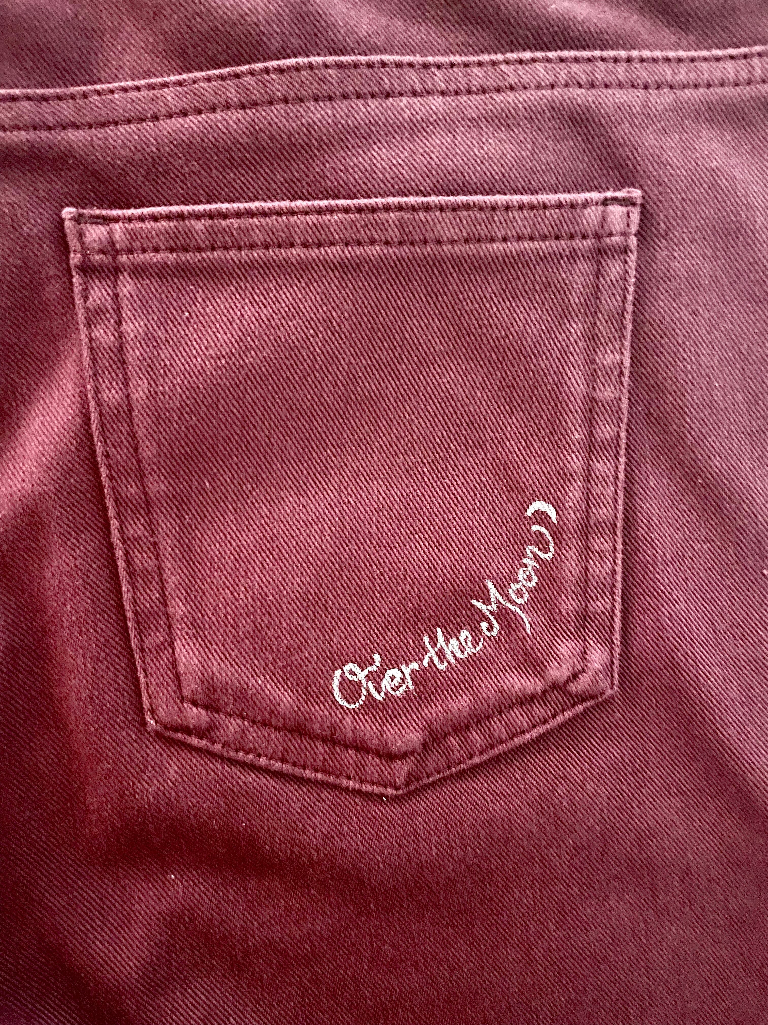 バックスタイルにもさりげなく花や蝶、ブランド名を入れています。