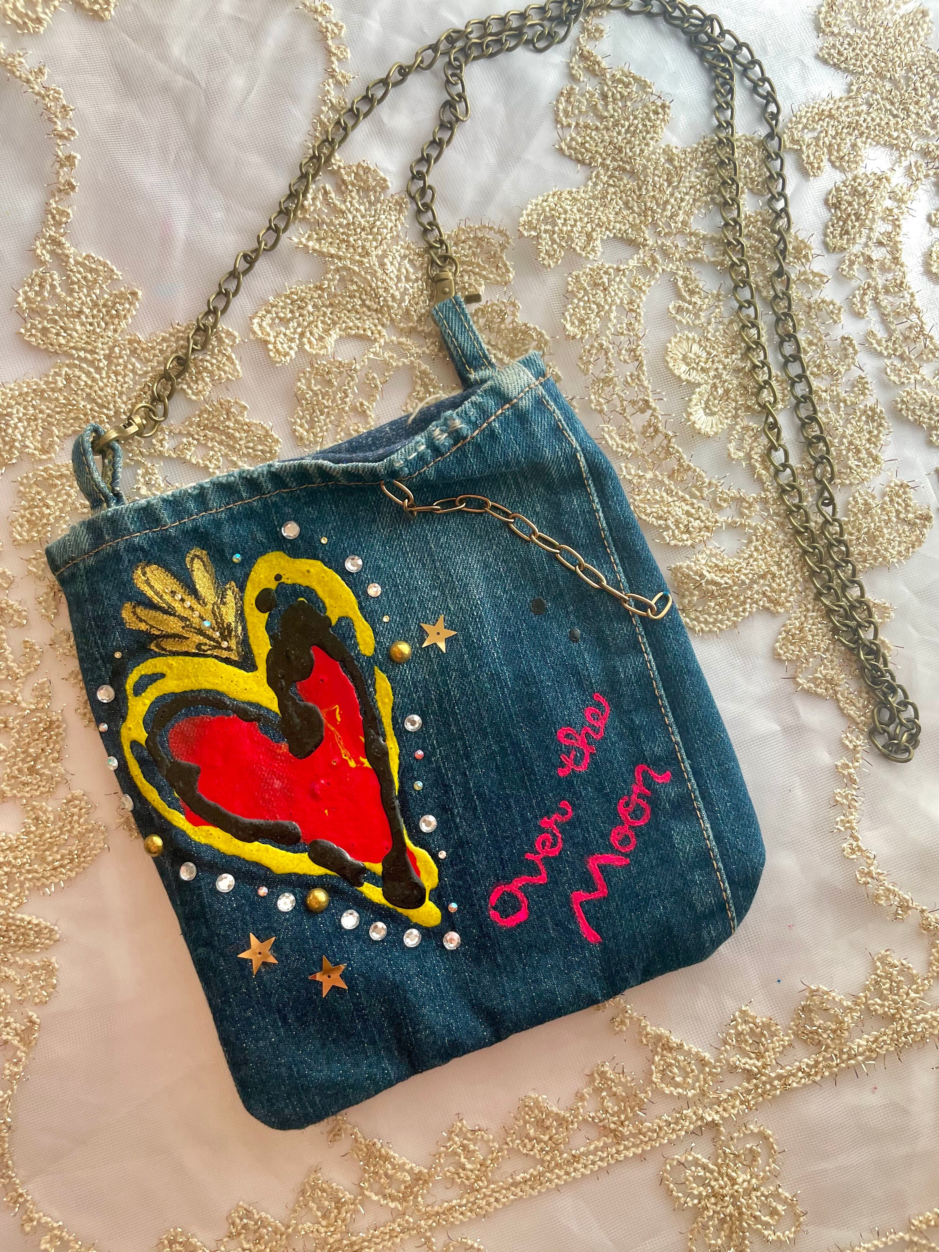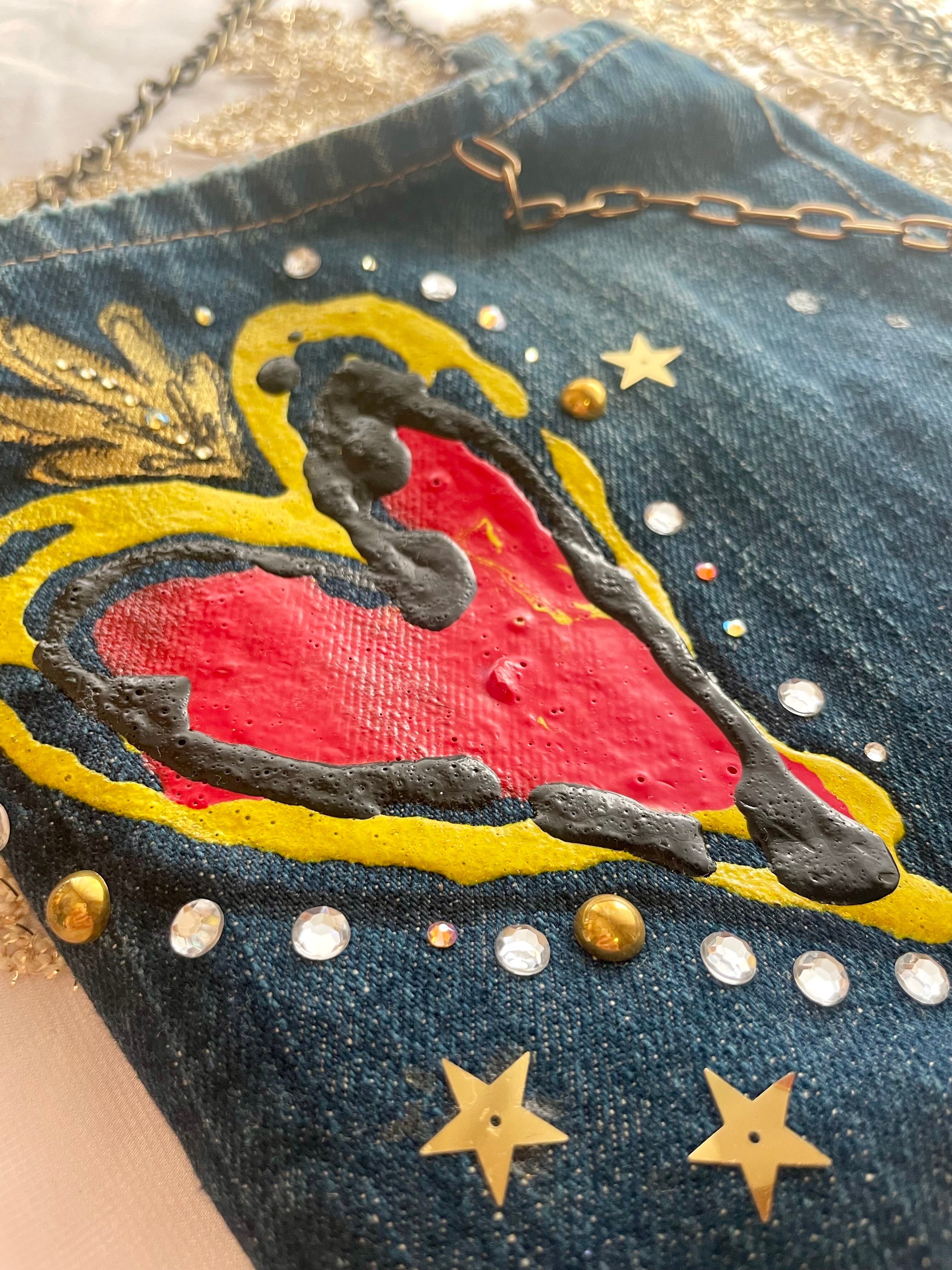 ⭐︎デニム地にアクリル絵の具でペイントしています