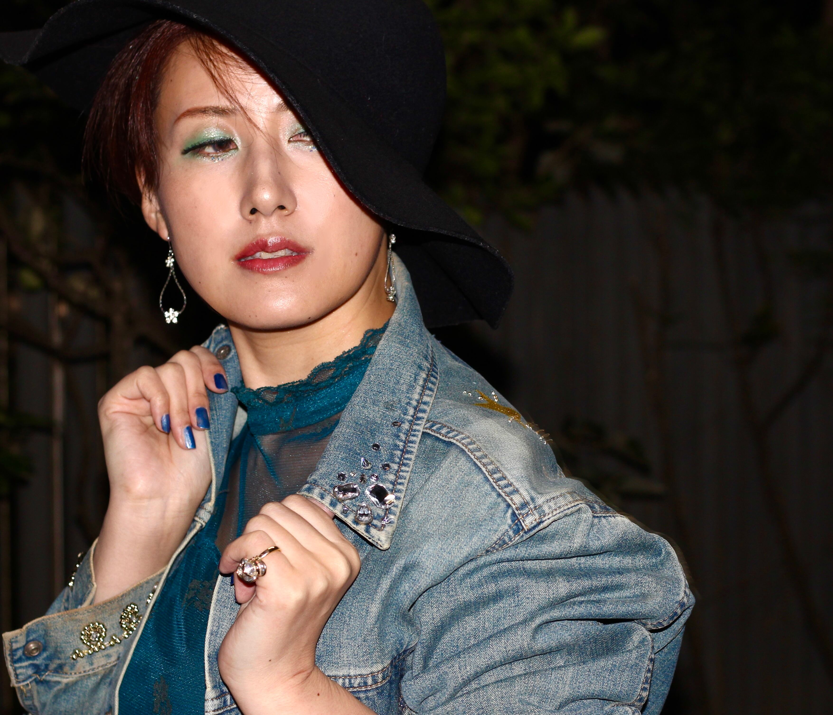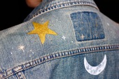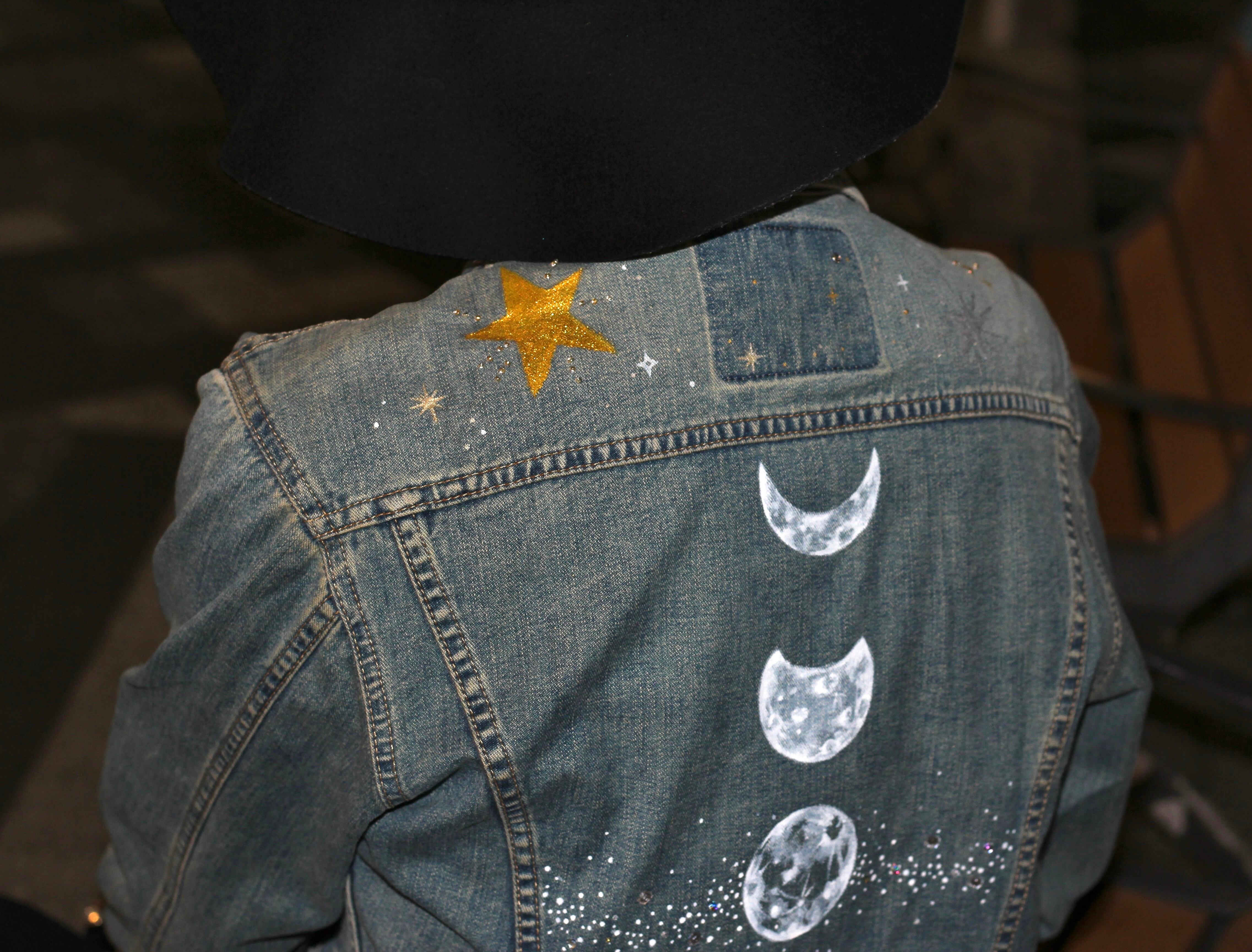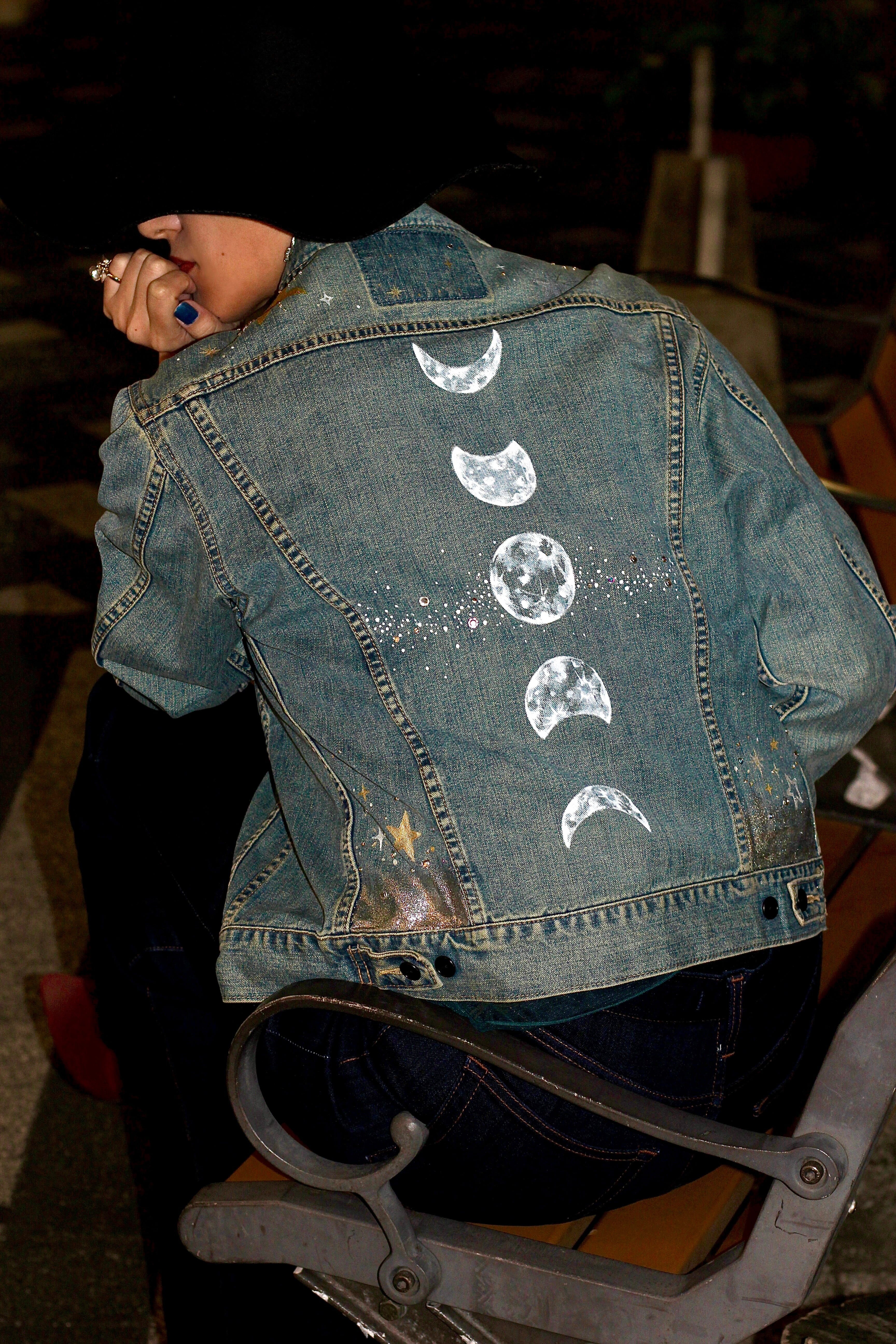柔らかなデニムジャケットに月の満ち欠けをペイントした一枚。