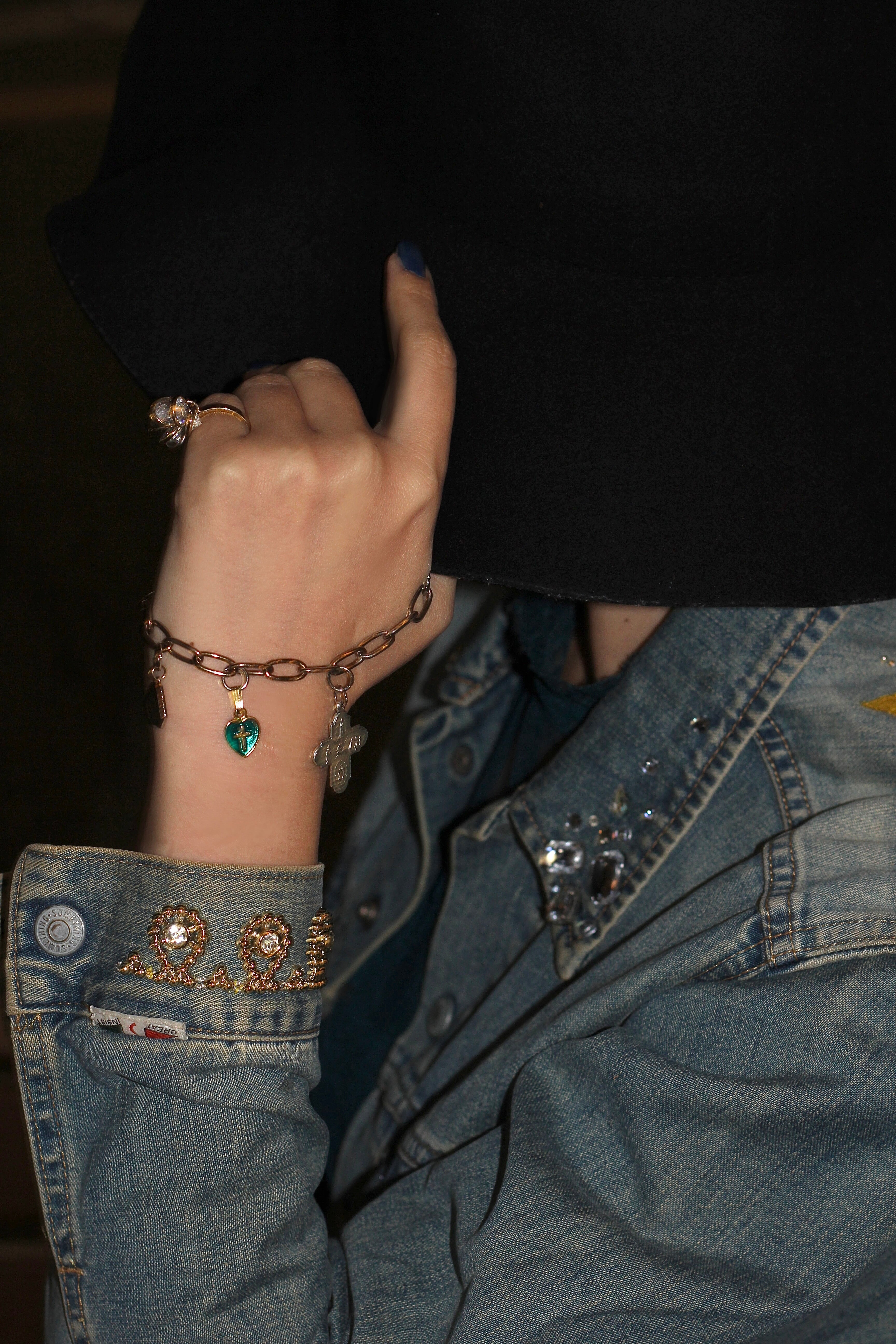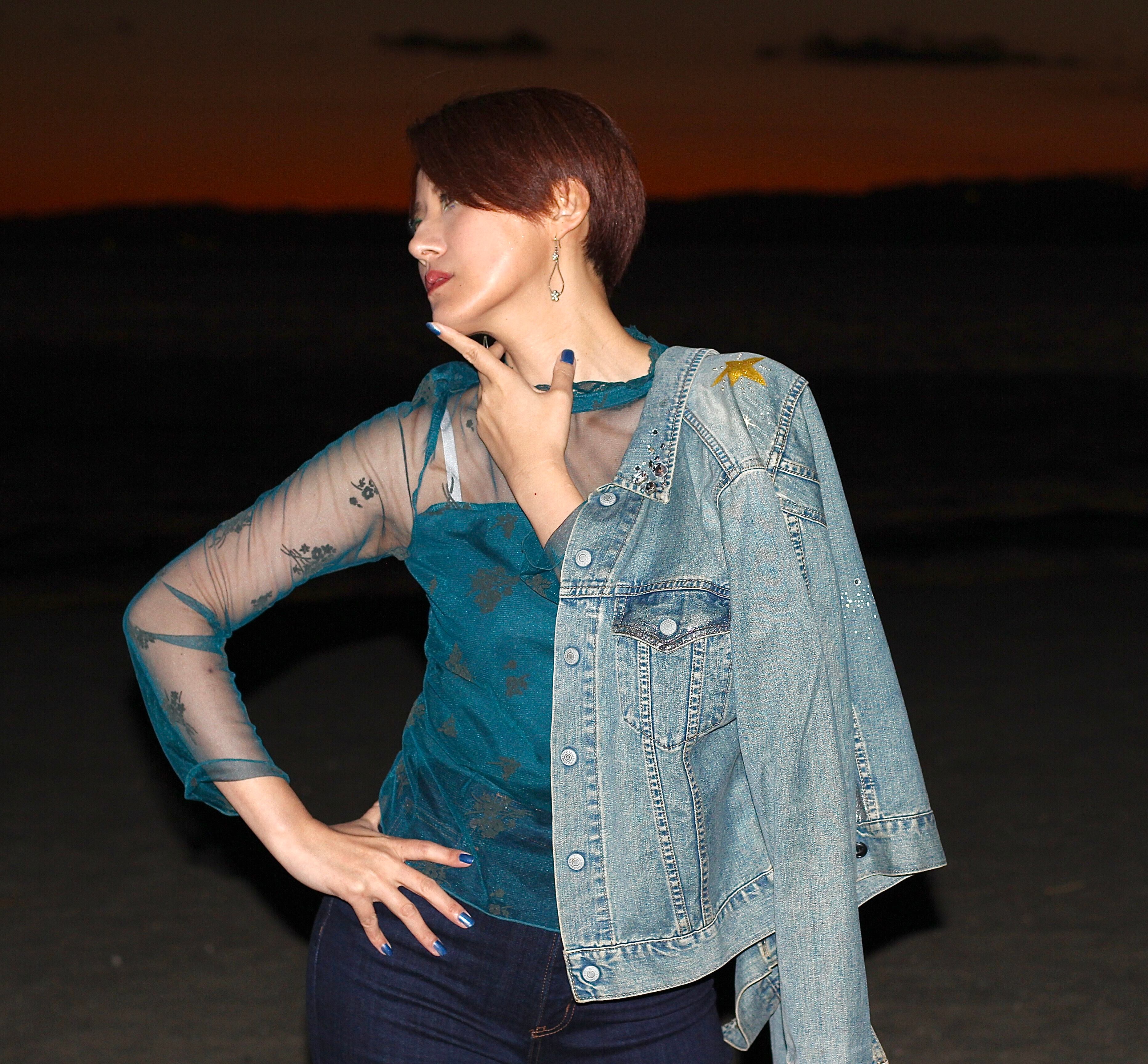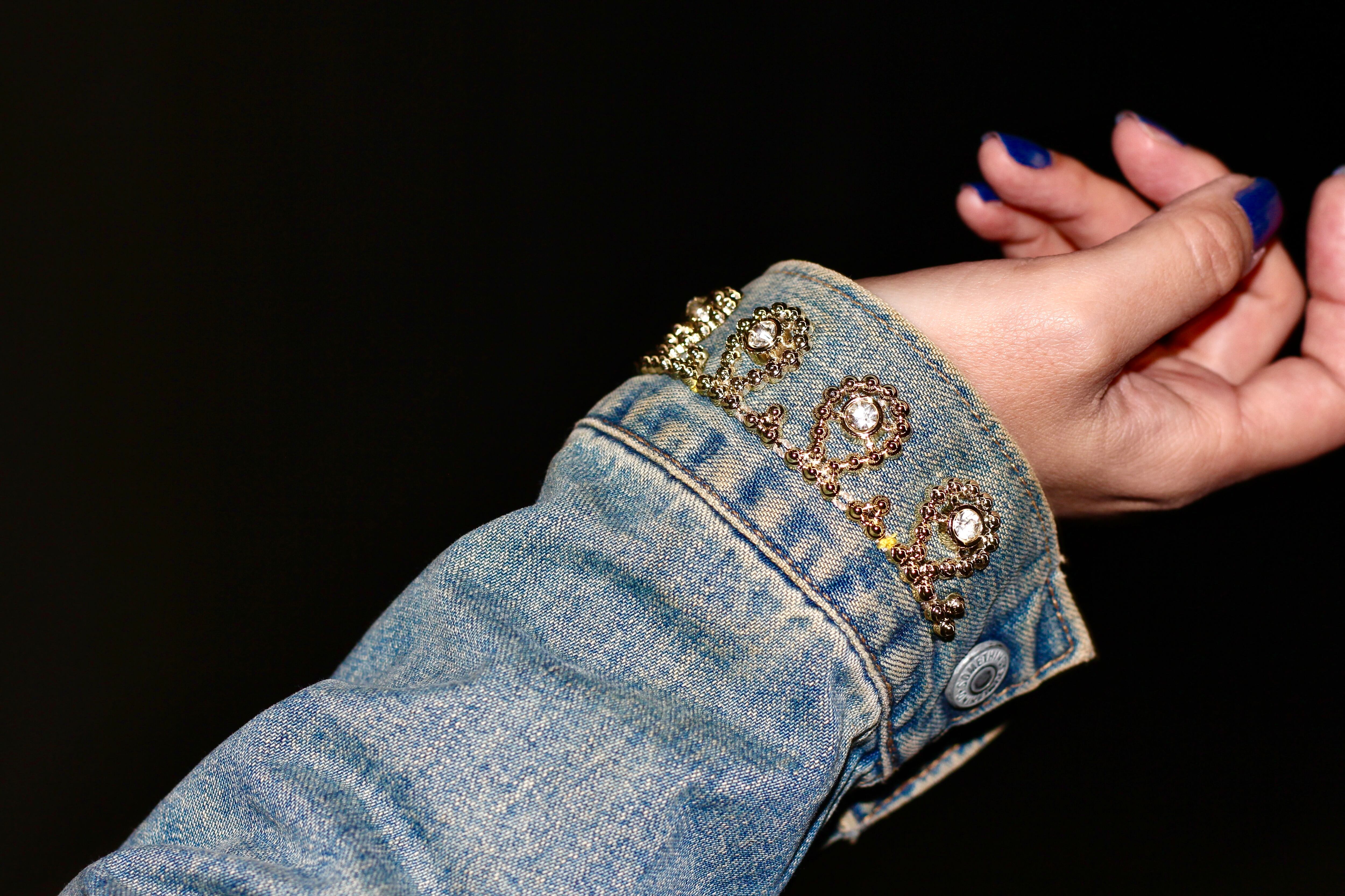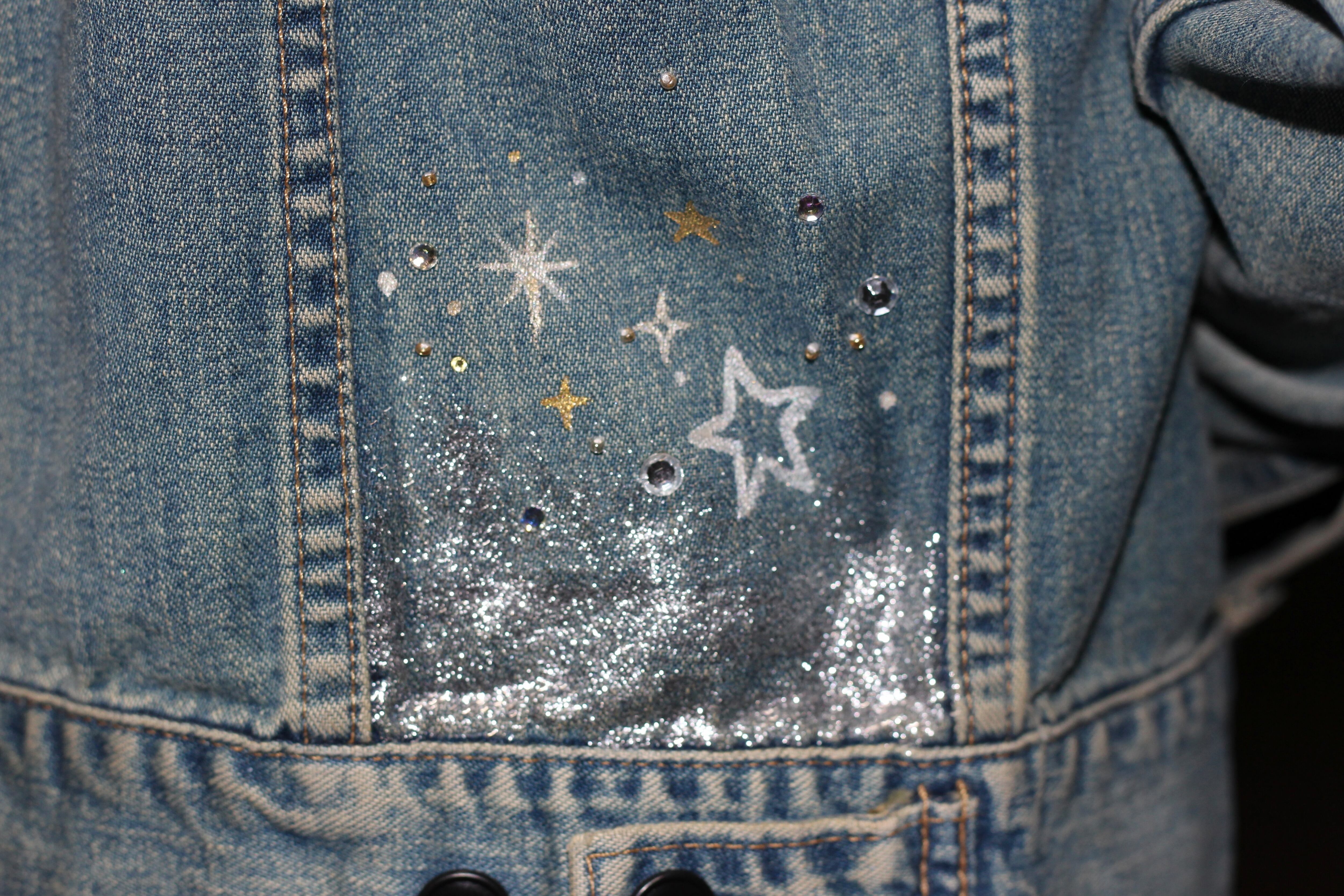 胸ポケットと後ろの裾にシルバーのグリッターをペイントし、華やかさをプラスしました。